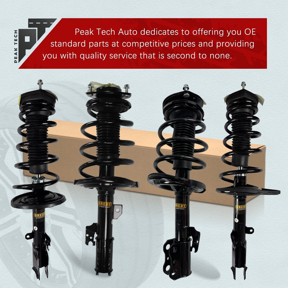 Please kindly know that Peak Tech is a certified distributor of Oredy products. Item in this listing is from brand Oredy. Store Home New Arrival View Feedback Contact us Add to Favourites 2PCs Front Rear Right Left Side Struts for 2007-2009 Lexus ES350 & 2007-2011 Toyota Camry & 2006-2012 Avalon Items Description Package Includes: 1x Front Driver Side Complete Strut + 1x Front Passenger Side Complete Strut 1x Rear Driver Side Complete Strut + 1x Rear Passenger Side Complete Strut Compatibility: For 2007 - 2009 Lexus ES350 ( Production From 1/06, Production Up To 7/09 ) For 2006 - 2012 Toyota Avalon (All Models) For 2007 - 2011 Toyota Camry ( 3.5L/2.4L ) Shipping Payment Return Warranty About us Shipping All orders in the continental 48 States will be shipped free of charge. Orders placed before 12pm (Eastern Standard) will be shipped the same business day of purchase. We only ship to the address provided to us at the time of checkout. Please verify the shipping address before making any payment. We do not ship to Hawaii, Alaska, Puerto Rico, APO/FPO/PO Boxes. Payment Paypal, Visa, and MasterCard are accepted forms of payment. Please use eBay checkout system when place your order. Immediate payment is required for all orders. Return Buyer has 30 days to contact us and 10 days to return it from the date buyer's return request was received. Please note we only accept return for brand new products. When the return mistake is made on seller, we will provide a free return. Or, customer will be charged for return shipping fee. We will issue a refund to buyer after receiving and checking return packages. Warranty Peak Tech provides a Lifetime Warranty for original purchasers. If an auto part is defective, Peak Tech will provide ONE-Time replacement. Buyer needs to pay for the shipping cost of replacements occurred in warranty process. Buyer needs to provide Pictures or Video of damaged goods. About us Peak Tech focuses on auto parts and provides struts and shock absorbers suitable for a wide range of applications. Peak Tech products deliver the look, feel, fit and performance of OE. We provide buyers with professional customer service, and hope to offer buyers a better shopping experience. You May Also Like for Honda Accord 2008 - 2012 2.4L 2x Struts + 2x Sway Bars Front Right Left Side for Honda CR-V 2002 2003 2004 2005 2006 2PCs Struts Coil Spring Front Right Left for Honda CR-V CRV 2007 2008 2009- 2014 2PCs Struts Coil Spring Front Right Left for Honda Accord 2008 - 2012 2.4L 2PCs Struts Coil Spring Front Right Left Side for 2006 - 2011 Honda Civic 1.8L Sedan & Acura CSX 2PCs Struts Front Right Left Copyright © 2024, peak-tech-autoparts All Rights Reserved