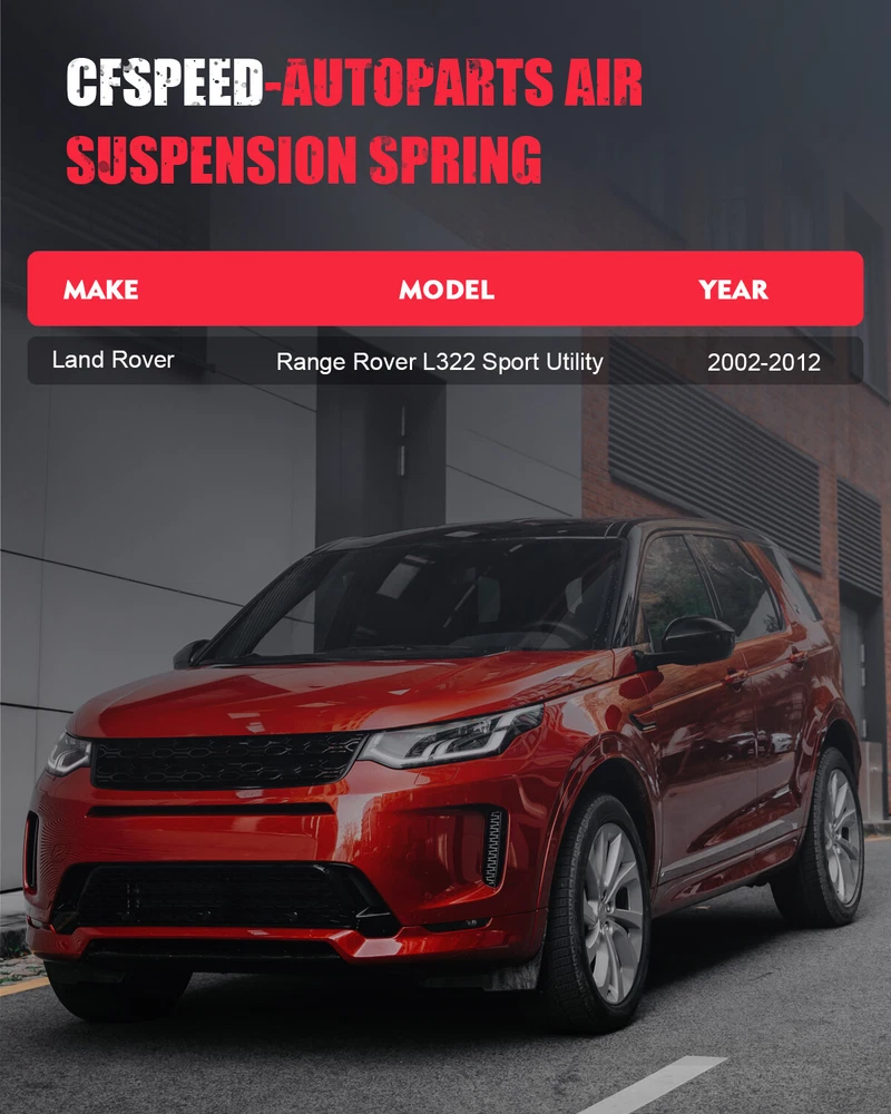 Attention?? Please double confirm the compatibility as well as the OEM number before purchasing. Our items are aftermarket parts. They will replace the original ones. If you are not sure whether our parts fit you should contact us before buying,we will confirm for you. Professional installation is recommended. Contact us please for whatever we can help. ? Reference OEM Number?? Front Air Suspension Spring: RNB000070,RNB000750,RNB500550,RNB501350,RNB501410,RNB501530, LR032570,LR051702,LR032563,LR051700,RNB000060,RNB000740,RNB500540,RNB501340 RNB501400,RNB501520 Front Rear Air Suspension Spring For Range Rover Sport Evoque Velar L322 SVR Attention?? Please double confirm the compatibility as well as the OEM number before purchasing. Our items are aftermarket parts. They will replace the original ones. If you are not sure whether our parts fit you should contact us before buying,we will confirm for you. Professional installation is recommended. Contact us please for whatever we can help. ? Reference OEM Number?? Front Air Suspension Spring: RNB000070,RNB000750,RNB500550,RNB501350,RNB501410,RNB501530, LR032570,LR051702, LR032563, LR051700,RNB000060,RNB000740,RNB500540,RNB501340 RNB501400,RNB501520 Rear Air Suspension Spring: RKB500130,RKB000150,RKB000151 RKB500080,RKB500082,RKB500240 Package Includes: 2PCS Front Left & Right Air Suspension Spring Bags 2PCS Rear Left & Right Air Suspension Spring Bags Fit For the Following Models: Land Rover Range Rover L322 Autobiography Sport Utility 4-Door 5.0L 2012 Base Sport Utility 4-Door 5.0L 2010-2012 Base Sport Utility 4-Door 4.4L 2003-2004 HSE Lux Sport Utility 4-Door 5.0L 2012 HSE Sport Utility 4-Door 5.0L 2010-2012 HSE Sport Utility 4-Door 4.4L 2003-2009 Supercharged Sport Utility 4-Door 5.0L 2010-2012 Supercharged Sport Utility 4-Door 4.2L 2006-2009 Professional Installation Recommended?? We recommended you install the part by yourself, it will reduce much labor cost. if you are not professional, please ask your mechanic to fix it. Strict Quality Control?? All of our PARTS undergo strict quality control throughout the production process. During each step of production multiple quality control checks are performed to insure each and every part lasts for years to come. General Policies?? If you have a question about a part you should contact us before buying. Is proud to offer you the best price and fastest service for all your aftermarket parts needs. In order to keep our prices low, we have the following purchasing policies. Questions: We're here for you! We are proud to offer quality service and we want your transaction to go perfectly. Take advantage of our customer service representatives who are here to help you; contact us on eBay. Thank you for your interest and we hope to do business with you! Features & Benefits: Highest Quality Materials Quality Tested - built to a strict level of product standards. Please Note: 1 year warranty for any manufacture defect.Please provide photos or videos to apply for warranty. Please inspect this part carefully prior to installation and contact us with any questions BEFORE attempting to install it. Returns: We only warranty cost of parts. Any installation or other fees are non-refundable. Item Specifics Placement on Vehicle Left Right Front Rear Type Air Suspension Shock Fitment Type Direct Replacement Package Box Single Weight(LB) 34.128 Upper Mounting Isolator Included No Isolator Required Lower Mounting Isolator Included No Isolator Required Upper Mount Type Stud Lower Mount Type Base Cup Included Hardware Mounting Hardware Drive Layout Front Engine 4WD Platform L322 Custom Bundle Yes Material Iron Aluminium Alloy Rubber Quantity 4PCS Manufacturer Warranty 1 Year OE Spec or Performance/Custom OE Spec Adjustable Yes Features Sealed Brand cfspeed-autoparts Manufacturer Part Number C84046501APS Interchange Part Number RKB500130,RKB000150,RKB000151,RKB500080,RKB500082 OE Part Number LR032570,LR051702,RNB000070,RNB000750,RNB500550,RNB501350 Superseded Part Number LR032563,LR051700,RNB000060,RNB000740,RNB500540,RNB501340 Important Notice Just like the picture, Professional installation required Instruction Manual No Metal Fitting Connection Design Standard Hose Thread Important Notice Just like the picture, Professional installation required Instruction Manual No Metal Fitting Connection Design Standard Hose Thread Payment PayPal preferred. Payments are expected within 7 days after the last winning auction is closed; Otherwise Unpaid Item Dispute will be filed with eBay. Shipping Product will be shipped within 2 business days after full payment is received and verified. Delivery Time is about 3-7 business days to most of countries. All domestic orders will be shipped via USPS, UPS or FedEx from our US warehouse and usually arrives to your door in about 3-5 business days. We ship the package to your shipping address in eBay instead of the one in PayPal. Please tell us your shipping address if it is different from the one in eBay. The tracking number will be given for the customer to check the shipping status online (registered or faster service only). We are not responsible for any wrong or undeliverable addresses. Please verify and update your shipping address on eBay during checkout. Returns WARNING : Cancer and Reproductive Harm - www.P65Warnings.ca.gov. We stand behind every product we sell. All of our brand new items come with a 60-Days money-back guarantee. We define the item as defective only if it doesn't function as described. It is the buyer's responsibility to understand the item description before bidding. We will replace the defective items, provided that they are in stock within the warranty period posted with the listing and the buyer return the original item and pay for the S&H cost for the replacement. We will refund the purchase price if the replacement is not available or buyer prefers a refund and send the original item back at his/her own cost. Shipping & handling cost are not refundable. 