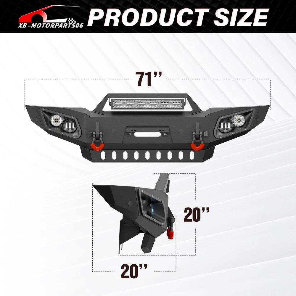 Front /Rear Bumper W/ LED Lights & D-rings For 2005-2015 Toyota Tacoma 2nd Gen Please pay attention to the product options you select: If you choose Front & Rear Bumper,You can get 1 × Front Bumper, 1 × Rear Bumper and Mounting Hardware; If you choose Only Front Bumper,You can get 1 × Front Bumper and Mounting Hardware; If you choose Only Rear Bumper,You can get 1 × Rear Bumper and Mounting Hardware; Suitable Models : Compatible with 2005-2015 Toyota Tacoma 2nd Gen Package Includes : ① Front & Rear Bumper option : 1 x Front Bumper, 1 x Rear Bumper, 9 x LED Lights, 1 x License Plate Bracket , 1 x Winch Plate , Paintable Armor , 4 x D-rings, Skid Plate, 2 x manual, screw fittings ② Fro nt Bumper option : 1 x Front Bumper, 1 x License Plate Bracket, 1 x Winch Plate , 5 x LED Lights, 2 x D-rings, Skid Plate, 1 x manual, screw fittings ③ Rear Bumper option : 1 x Rear Bumper, Paintable Armor, 2 x D-rings, 4 x LED Lights, 1 x manual, screw fittings Product Information : Package Dimensions : 70.08"D x 24.8"W x 24.8"H Installation mode: Bolt-On With Sensor Holes: Yes ( Only Front Bumper Have, and not fit for original sensor ) Steel thickness: 3mm Placement on Vehicle: Front/Rear Item Weight: Front Bumper: 121 Pounds; Rear Bumper: 67 Pounds Material: Carbon Steel Color: Black (hand measurements may have an error of 2-3 mm/0.078-0.118 in) Feature : Front bumper : ① A durable skid plate for underbody protection, a winch plate capable of supporting up to 12,000 pounds, two 4.75-ton D-rings, a license plate bracket, sensor holes, a powerful 120W LED light bar, and four brilliant 18W LED spotlights ; ② Our front bumper is made from strong high-strength steel with a durable textured black powder coating. This combination ensures both toughness and style while offering protection. It's also resistant to rust, ensuring long-lasting performance and appearance, even if the powder coating gets scratched; ③ Our front bumper has a user-friendly bolt-on design for easy, modification-free installation; ④Powder Coated, Durability, Waterproof; Rear Bumper : ① Our rear bumper comes equipped with a stainless steel skid prevention plate, two 4.75-ton D-rings, and four powerful 18W LED spotlights. It's tailored with pre-drilled holes for License Plate lights and the license plate; ② Our rear bumper, made from strong high-strength steel with a textured black powder coating, delivers both durability and style; ③ Our rear bumper has a user-friendly bolt-on design for easy, modification-free installation; ④ Durability, Waterproof, Rust-proof; Warranty Period :2 year Standard Shipping (FedEx Ground or FedEx Home Delivery) Will usually ship within 3 business days of receiving cleared payment Please pay attention to the product options you select: If you choose Front & Rear Bumper,You can get 1 × Front Bumper, 1 × Rear Bumper and Mounting Hardware; If you choose Only Front Bumper,You can get 1 × Front Bumper and Mounting Hardware; If you choose Only Rear Bumper,You can get 1 × Rear Bumper and Mounting Hardware; Suitable Models : Compatible with 2005-2015 Toyota Tacoma 2nd Gen Package Includes : ① Front & Rear Bumper option : 1 x Front Bumper, 1 x Rear Bumper, 9 x LED Lights, 1 x License Plate Bracket , 1 x Winch Plate , Paintable Armor , 4 x D-rings, Skid Plate, 2 x manual, screw fittings ② Fro nt Bumper option : 1 x Front Bumper, 1 x License Plate Bracket, 1 x Winch Plate , 5 x LED Lights, 2 x D-rings, Skid Plate, 1 x manual, screw fittings ③ Rear Bumper option : 1 x Rear Bumper, Paintable Armor, 2 x D-rings, 4 x LED Lights, 1 x manual, screw fittings Product Information : Package Dimensions : 70.08"D x 24.8"W x 24.8"H Installation mode: Bolt-On With Sensor Holes: Yes ( Only Front Bumper Have, and not fit for original sensor ) Steel thickness: 3mm Placement on Vehicle: Front/Rear Item Weight: Front Bumper: 121 Pounds; Rear Bumper: 67 Pounds Material: Carbon Steel Color: Black (hand measurements may have an error of 2-3 mm/0.078-0.118 in) Feature : Front bumper : ① A durable skid plate for underbody protection, a winch plate capable of supporting up to 12,000 pounds, two 4.75-ton D-rings, a license plate bracket, sensor holes, a powerful 120W LED light bar, and four brilliant 18W LED spotlights ; ② Our front bumper is made from strong high-strength steel with a durable textured black powder coating. This combination ensures both toughness and style while offering protection. It's also resistant to rust, ensuring long-lasting performance and appearance, even if the powder coating gets scratched; ③ Our front bumper has a user-friendly bolt-on design for easy, modification-free installation; ④Powder Coated, Durability, Waterproof; Rear Bumper : ① Our rear bumper comes equipped with a stainless steel skid prevention plate, two 4.75-ton D-rings, and four powerful 18W LED spotlights. It's tailored with pre-drilled holes for License Plate lights and the license plate; ② Our rear bumper, made from strong high-strength steel with a textured black powder coating, delivers both durability and style; ③ Our rear bumper has a user-friendly bolt-on design for easy, modification-free installation; ④ Durability, Waterproof, Rust-proof; Warranty Period :2 year