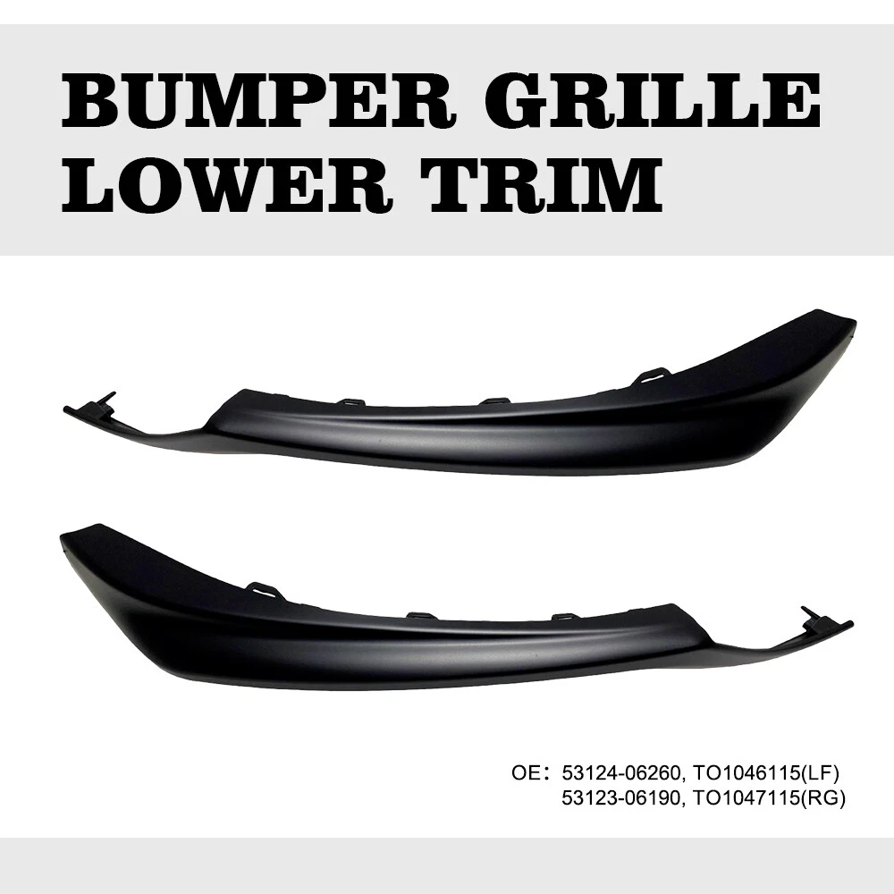 Right Fit For: 2021-2023 Toyota Camry XSE SE Specifications: OE Number: 53123-06190, TO1047115 Material: ABS Color: Glossy black Placement on vehicle: Front right Features: *Perfect Match Manufactured according to your car model to match with your vehicle perfecly. *Simple installation Easy installation with direct replacement,other modifications are not required. *Superior material Made of superior material to extend its long service life and durability. *High-quality Front Right Lower Bumper Grille Molding Trim For 2021-2023 Toyota Camry XSE SE Right Fit For: 2021-2023 Toyota Camry XSE SE Specifications: OE Number: 53123-06190, TO1047115 Material: ABS Color: Glossy black Placement on vehicle: Front right Features: *Perfect Match Manufactured according to your car model to match with your vehicle perfecly. *Simple installation Easy installation with direct replacement,other modifications are not required. *Superior material Made of superior material to extend its long service life and durability. *High-quality Our trim with the advantages of wear and scratch resistance provides a better shopping experience for our customer. Package Included: Bumper Trim *1 Left Fit For: 2021-2023 Toyota Camry XSE SE Specifications: OE: Left: 53124-06260, TO1046115 Material: ABS Color:Glossy black Placement on vehicle: Front left Features: *Perfect Match Manufactured according to your car model to match with your vehicle perfecly. *Simple installation Easy installation with direct replacement,other modifications are not required. *Superior material Made of superior material to extend its long service life and durability. *High-quality Our trim with the advantages of wear and scratch resistance provides a better shopping experience for our customer. Packaging include: Bumper Trim*1 Item Specifics Color Gloss Black Placement on Vehicle Front Right OE/OEM Part Number 53123-06190, TO1047115 Material ABS Fitment for 2021-2023 Toyota Camry XSE SE Fitment Type Direct Replacement Number of Pieces 1 Universal Fitment No Manufacturer Warranty 1 Year Features Easy Installation Brand Unbranded FAQ ♥ If you have a decoding problem or any other problems, please contact us first, we will help you with it. We will reply you within 24 hours in working days. I'm a new seller, thanks a lot for your trust and convince! I will serve you with all my heart. ♥ Q1: Will this bulb fit my vehicle? A: We can match almost any vehicle to one of our bulb sizes. eBay only lets us include some vehicle fitments per listing, but if your vehicle does not show up on the compatibility table at the top of our listings, welcome you to contact us for free consulation before purchasing a product. Q2: My item has not arrived, what's taking so long? A: Sometimes items take longer than expected, especially if it’s going far or to rural area. Check with your post office to see if your item has been held up. Sometimes Royal Mail will not update a tracking number until it has arrived at its destination. If your item still don't arrive after a few days, let us know so we can double check for you and help solve it asap. Q3: My bulbs won't fit, help! A: Special bulb holder may be required. See if you can take the holder from the stock bulb. If not, let us know. The bulb size may be wrong, double check the item you received with the item you ordered. Do you have an aftermarket lighting housing? These may not be perfectly fitted for aftermarket bulbs and will require some manual modifications. Q4: Neither side lighting up? Both sides flicker, hyper flash, or work inconsistantly. A:Check the light fuses, and then check the ballast plugs to insure correct installation. If this doesn't work, there may be a voltage problem with the vehicle. You probably just need a relay or capacitor. Even though some bulbs are builtin resistors, they may still need a decoder. Pay & Ship (1). We gladly accepts payment via PayPal, We will ship your item(s) within 24 hours. (2). Before payment, please keep the consistency of Paypal address and ebay address. (3). Quantity orders are welcome! Returns (1). We offer 60 days free return policy. Please contact us within 60 days from the date you receive your order if you have any issues with the product or want return. Refund will be send after we got your resend package. (2). All returned items should be in the original packaging , return tracking information should be provided . Contact Us (1).Negative feedback will not help resolve any problems you have, please contact us via eBay messages before leaving negative feedback , our customer service will make best effort to help you with the issues. (2).We maintain high standards of excellenceand strive for 100% customer satisfaction! Feedback is very important to us. We request that you contact us immediately before you give us neutral or negative feedback, so that we can satisfactorily address your concerns. About us We're professional in car and motorcycle accessories, especially in LED bulbs. We have our own factory and R&D team. Our belief is to sell top quality items that fit your car and serve you with our heart. Anything please feel free to contact us! Our customer service is very responsibility. Come and follow us! DESCRIPTION NEW ARRIVED HOT SALE CONTACT US SAVE US Store Category Store Home Other Hot Item Set Front Bumper Retainer Side Support Brackets For Toyota Camry 2012-2014 LH&RH USD 12.99 For Dodge Charger Bumper Bracket 2015-2021 Pair Passenger & Driver Side Front USD 26.99 For 2011-2013 Toyota Corolla Front Bumper Support Bracket Set Left and Right USD 11.99 Front Bumper Bracket Support 1 Pair Left Right Side for 2009-2020 Dodge Journey USD 13.99 Bumper Bracket Support For 2011-13 Toyota Corolla Front Driver & Passenger Side USD 11.39 New List Item For 2004-2008 Chrysler Crossfire Front & Rear LED Side Bumper Marker Smoked LED USD 36.99 For 2005-2013 Chevy C6 Corvette Front & Rear LED Side Marker Light Clear Lens 4X USD 39.99 2x Red Lens LED Rear Bumper Side Mark