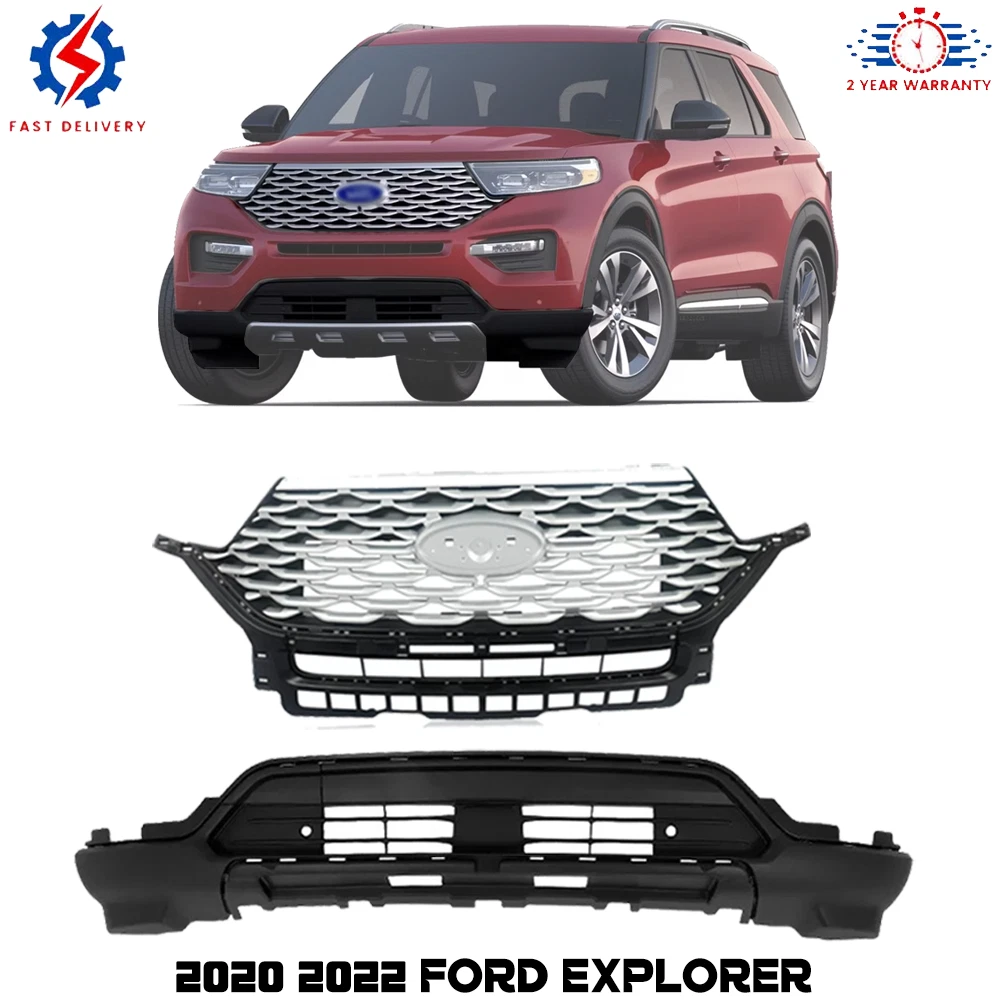 Hype_Turbo Free Shipping & Returns 3-4 days Shipping 30 Days Money Back 100% Satisfaction Front Upper Grille & Lower Valance For 2020 2021 2022 Ford Explorer REPLACEMENT BUMPER KIT Restore the sleek, modern appearance of your 2011-2013 Hyundai Elantra with this high-quality Front Bumper Cover Fascia & Grille Assembly. Engineered to meet OEM specifications, this replacement assembly delivers an exact fit and exceptional performance. The bumper cover arrives primed and ready for paint, allowing you to match your vehicle’s color effortlessly. The included grille assembly enhances the front-end look while ensuring proper airflow to critical components. Whether you're replacing damaged parts or upgrading your car's style, this bumper and grille combo is the ideal solution. Built with durability in mind, it resists wear and tear while offering easy installation for both professionals and DIY enthusiasts. NOTES Location : Front & Lower Brand New in the Box - Fit and Quality Guaranteed! Material Plastic Anticipated Ship Out Time 1-4 business day Quantity Sold Auto Body Repair Kit Set Of 3 Product Fit Direct Fit Replaces OE Number AF480 Color/Finish Black / Chrome Recommended Use OE Replacement Replaces Partslink Number AF480 Vehicle Body Type 4-Door Components [1]Upper Grille [1] Lower Valance Prop 65 Warning WARNING: This product can expose you to chemical which is known to the State of California to cause cancer and birth defects or other reproductive harm. For more information go to www.P65Warnings.ca.gov. Shipping Notes We have multiple warehouses in US and will choose the nearest one for shipping according to your address and our inventory. Ford : 2020 2021 2022 Ford Explorer
