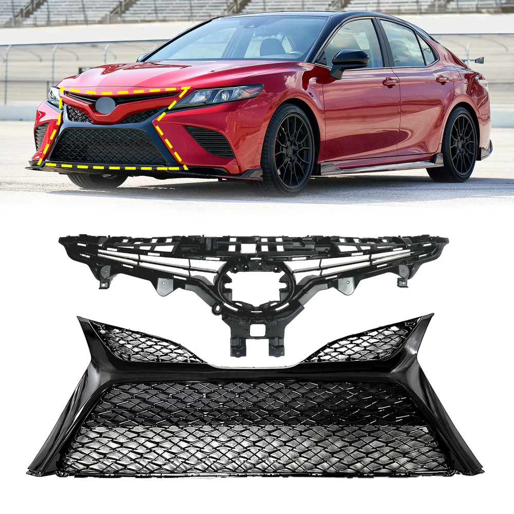 Product Description Features: Increase Air Flow Direct Bolt-On Replacement Dramatically Improve Styling & Appearance Provides better airflow to the radiator to help the cooling process better. Instruction will not be provided, Professional installation is recommended. Fitment: For 2018 2019 2020 Toyota Camry SE/XSE Models Only Packing includes: 1x Upper Grille 1x Lower Grille (W/O Rader Hole) About Returns Better Experience: Please contact us regarding any problem of the product before leaving the negative feedback, we will try our best to solve the problem. Please double check the OE number or fitment before place the order, the buyer is responsible for the return cost if order wrong item or does not like it etc. We provide free return in some products, please make sure to use the original package for return, and make sure wrap well to avoid any surcharge due to box oversized or item damaged when it is returned. Thank you for your purchase and support! We are committed to our customer's satisfaction. Shipping from USA (usually 2-6 days), Fast Shipping and Good Service. About Returns Please contact us regarding any problem of the product before leaving the negative feedback, we will try our best to solve the problem. Please double check the OE number or fitment before place the order, the buyer is responsible for the return cost if order wrong item or does not like it etc. We provide free return in some products, please make sure to use the original package for return, and make sure wrap well to avoid any surcharge due to box oversized or item damaged when it is returned. Thank you for your purchase and support! Better Experience: We are committed to our customer's satisfaction. Shipping from USA (usually 2-6 days), Fast Shipping and Good Service. powered by