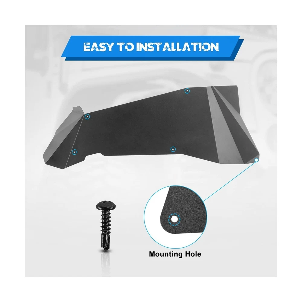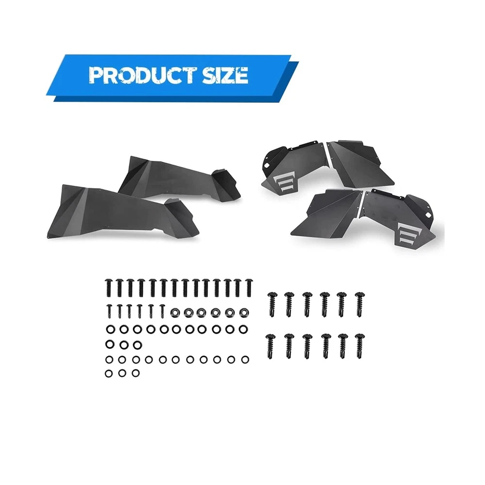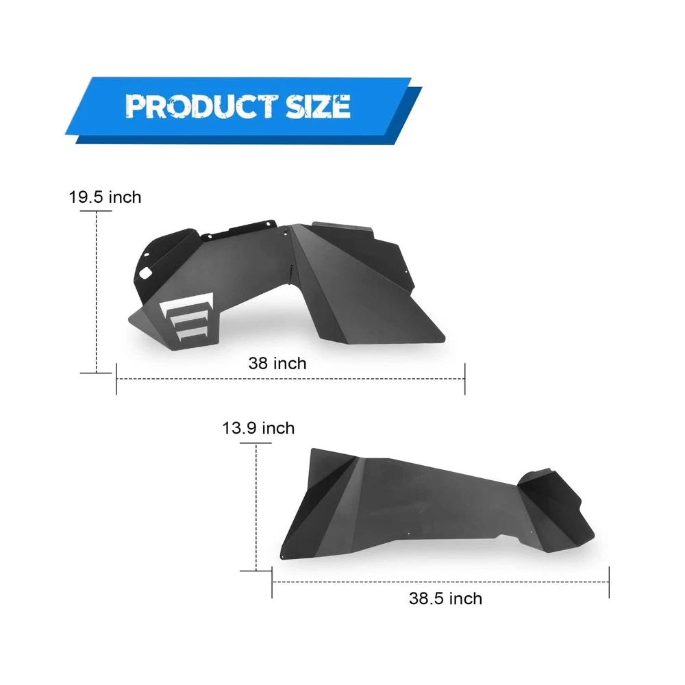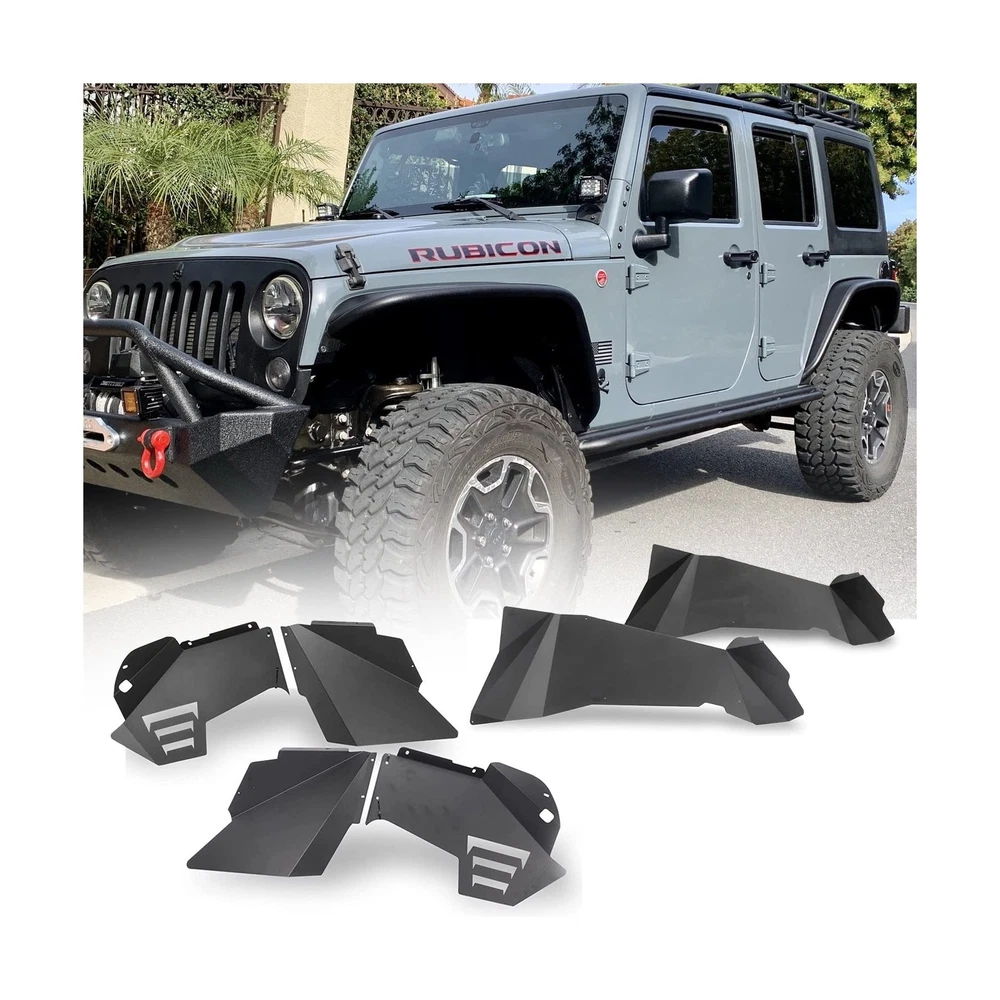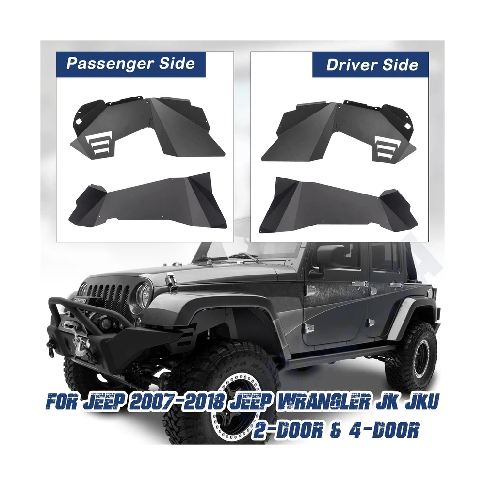 Front and Rear Inner Fender Liners for Jeep 2007-2018 Wrangler JK & JKU Unlimited 4WD 2WD, Hawkley Alloy Steel Fender Flares Inner Liners Wheel Well For 2007-2017 2018 Wrangler Rubicon Sahara Description Features: FITMENT - JK inner fender liners are specifically built for Jeep 2007 2008 2009 2010 2011 2012 2013 2014 2015 2016 2017 2018 Wrangler JK/JKU Unlimited, including 2 Doors / 4 Doors models. PROTECT ENGINE AND IMPROVE AIRFLOW -- Protect your Wrangler JK's with the off-road Inner fenders for your wheels. With vents to help reduce under-hood temperature are constructed to reseal your engine and provide the airflow you need to realize your JK's optimal power. DECORATION AND PROTECTION - Full coverage Compatible with total protection, help protect vehicle from rocks and debris inside the wheel well when driving on or off road. Keeping the engine bay clean and safe, makes your car always stay in high performance status, prevent the rust of the paint surface caused by the splash of sediment, mud and debris INSTALLATION - This steel fender flares inner liners each side inner liner are 2 parts put together as a complete construction. Easy to install.No drilling,just bolt-on the inner fender with original screw and factory hole.Easy access for your wranglers shocks, Easy to inspect and adjust. PERFORMANCE - The steel material make the jk fender flares inner liner have a good property,Powder coated make it will be a long time waterproof.Two stage finish using E-Coat pre-coating and high-grade textured black powder coating for long lasting corrosion resistance. Product Details: Brand: Hawkley Color: Black Exterior Finish: Black Powder Coated Steel Material: Alloy Steel Item Weight: 11.93 Kilograms Brand: Hawkley Color: Black Exterior Finish: Black Powder Coated Steel Material: Alloy Steel Item Weight: 11.93 Kilograms Style: Inner Fender Liners Auto Part Position: Front Vehicle Service Type: Car Fit Type: Vehicle Specific Fit Manufacturer: Hawkley UPC: 731694539827 Model: jk wrangler inner fender liners for jeep Item Weight: 26.2 pounds Package Dimensions: 40 x 20 x 9.75 inches Country of Origin: China Item model number: JK01 Manufacturer Part Number: JK01 Special Features: Stylish Vent Design Date First Available: June 10, 2022 Delivery We Do Not Ship Outside of the Continental US. Return Policy All items qualify for returns within 30 days of receipt. Buyer is responsible for return shipping on any item that is not damaged. Feedback We take our reputation seriously, we buy and sell online, so we understand the value of trust. If you are unsatisfied with your order, please contact us and we will work with you to resolve it to your satisfaction.