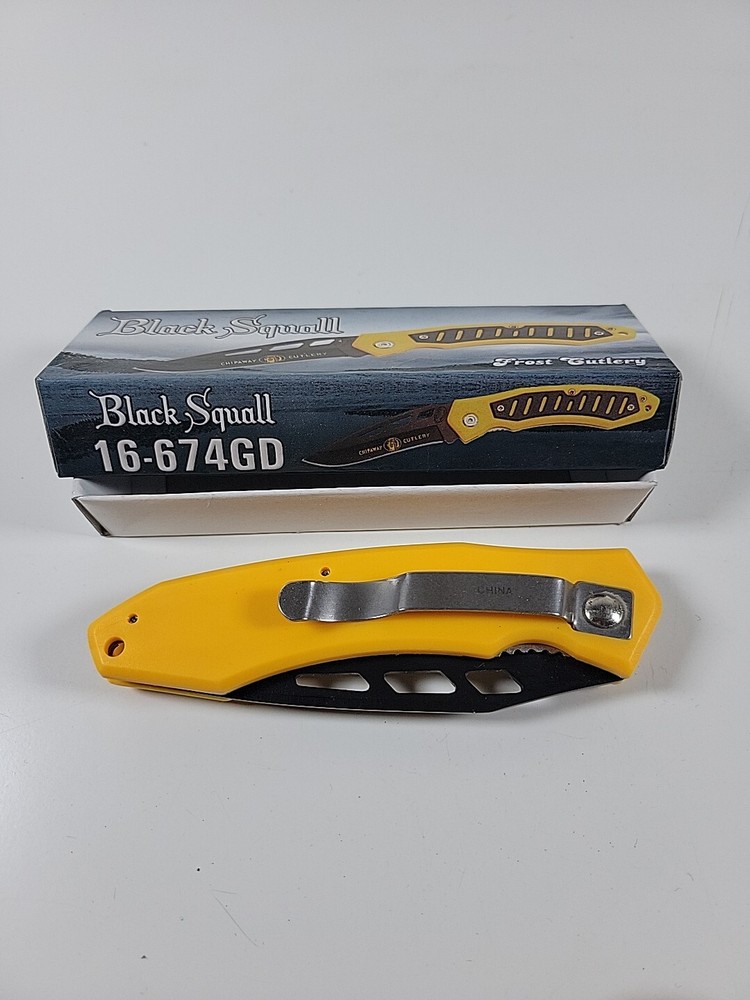Frost Cutlery Black Squall Yellow Folding Pocket Knife Brand New