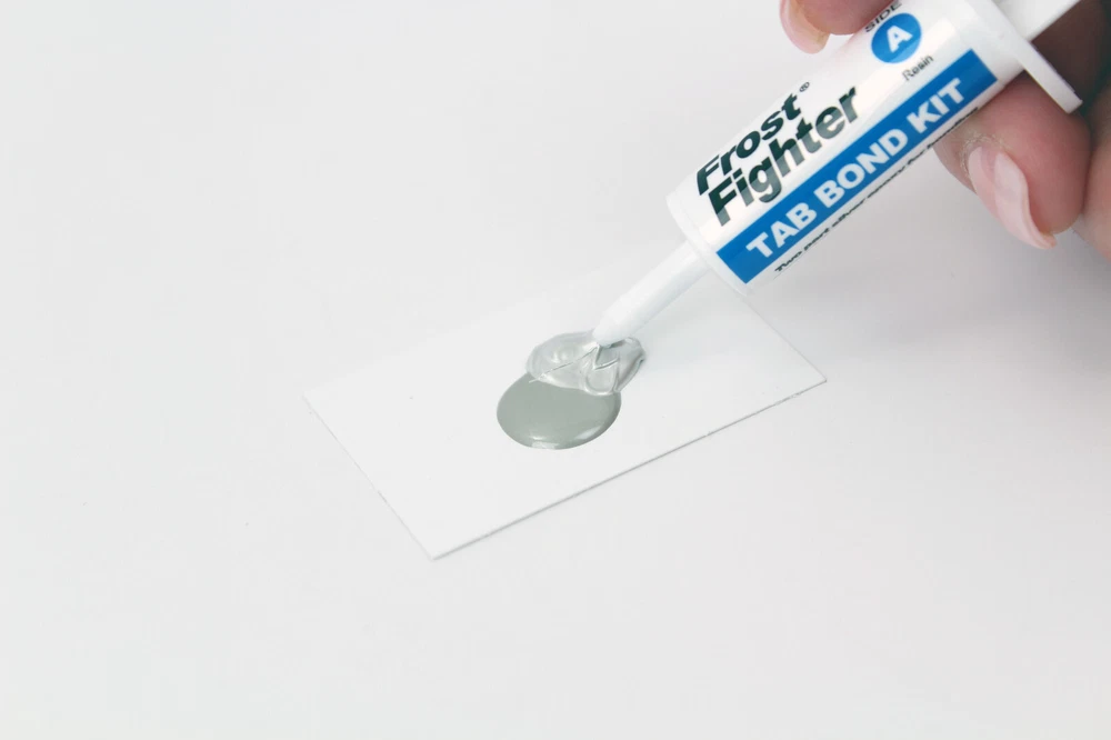 Frost Fighter Rear Window Defroster/Defogger Tab Bonding Repair Kit 2000 Bonds metal tabs back to rear window defrosters High sliver content for maximum electrical conductivity Includes mixing sand paper, mixing pads, and stir sticks Approved by General Motors for defroster repair / defogger repair Adhesion promotion for rugged and reliable conductive defroster / defogger tab bonds