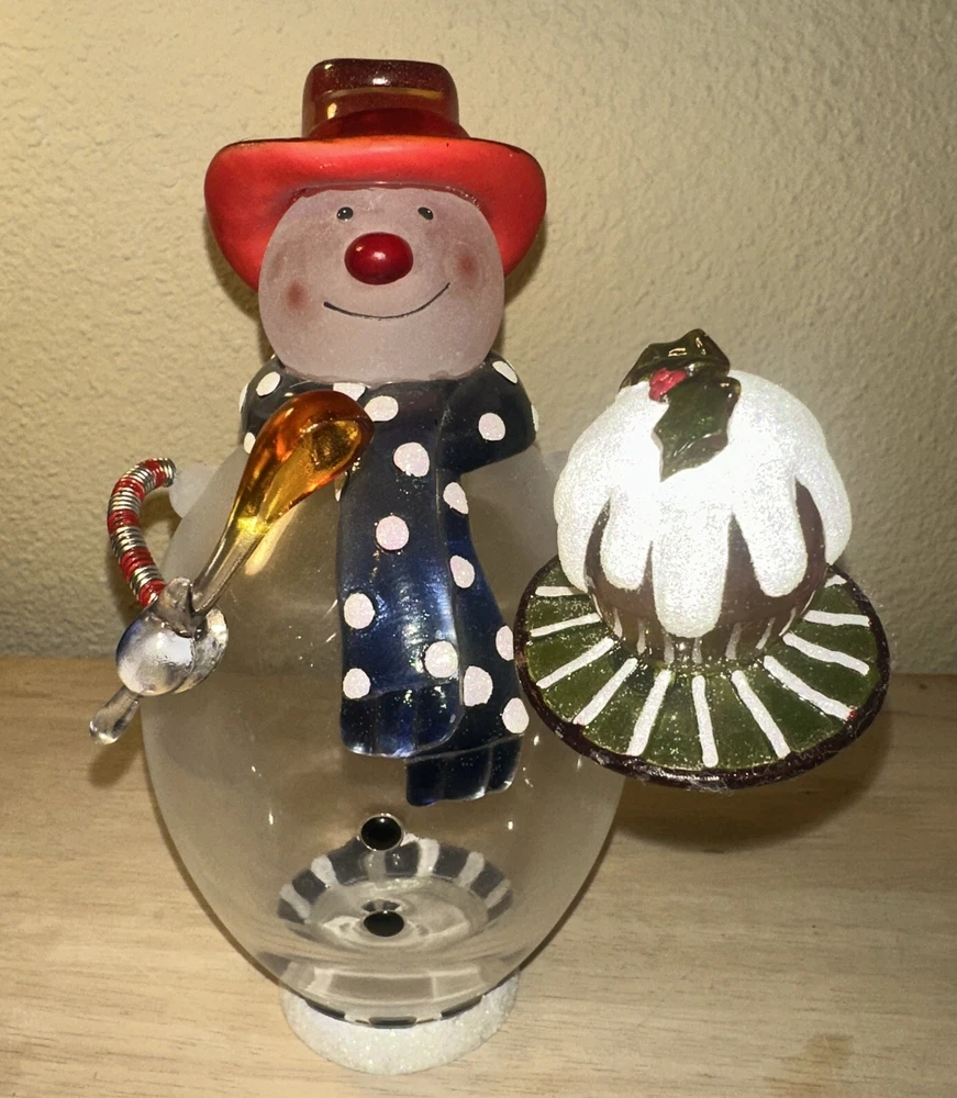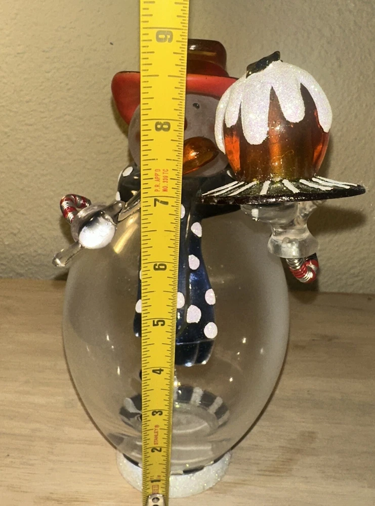 Item Length: 9 in Character: Baking Department: Kids, Teens, Adults, Men, Women Occasion: Christmas Type: figurine Color: Multicolor gtin13: n/a Brand: Unbranded Theme: Christmas UPC: n/a Material: Acrylic, Plastic Character Family: Snowman