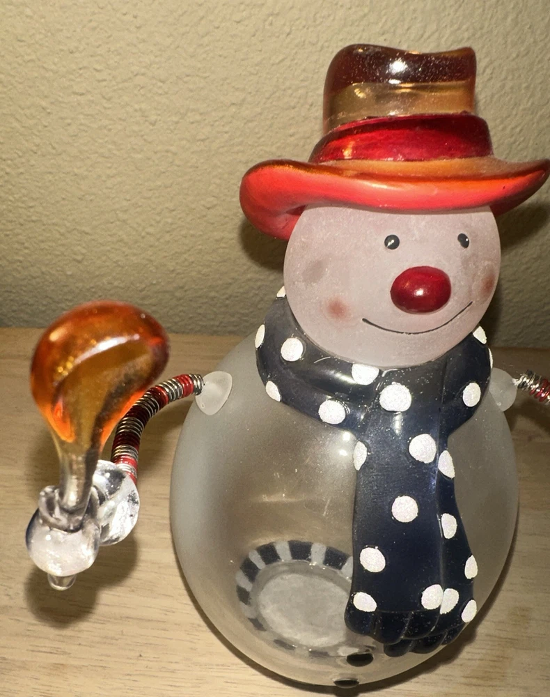 Frosted Acrylic Baker Christmas Snowman Decoration 9” w/ Wire Movable Arms