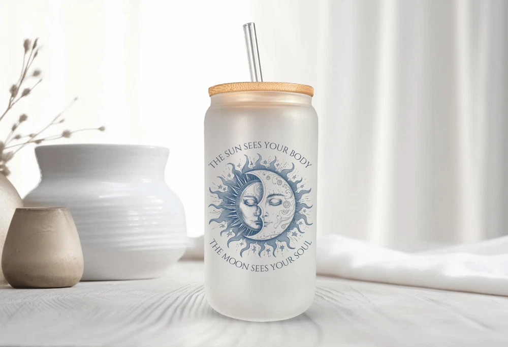 Made of glass, designed to have a mystical look - Perfect for holding your favorite beverage hot or cold, as a gift for a loved one, friends or coworkers, or just to complete your kitchen decoration. DISCLAIMER: Please note that the results of sublimation in ceramic mugs or stainless steel tumblers may differ from frosted glass cans. Due to the frosted or matte effect of the glass, the colors from the illustrations may appear slightly muted after sublimation in the cup. Condition is New. Designed and sublimated by Mugzan. NOT Dishwasher nor Microwave safe. Hand wash recommended for longer use. Dimensions: 5.78 in (H) x 2.95 in (W). Free smoke and pet environment. Shipped off via USPS Services. Most orders ship out the same day (orders made before noon -Eastern Time- ) or the next day, except weekends and holidays. If you have any question, please do not hesitate to contact us before purchasing. Please leave feedback after item is received, we appreciate your support!