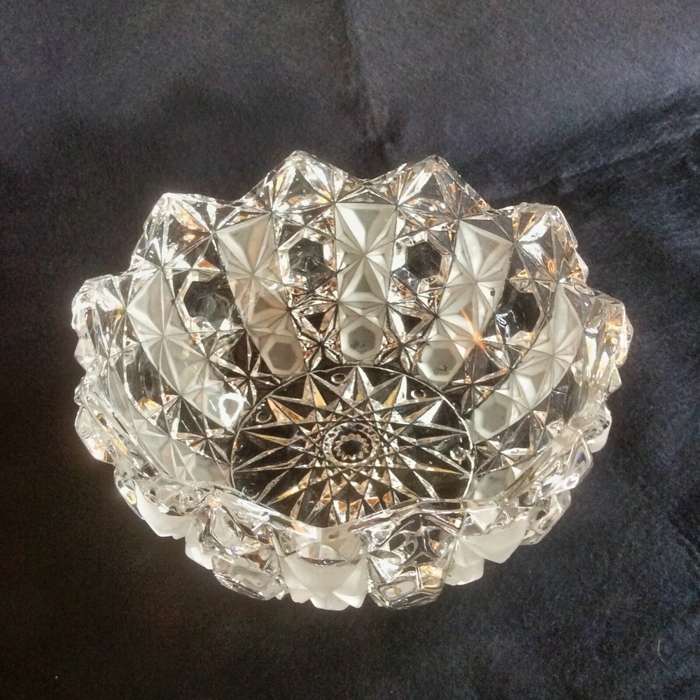 Frosted Glass Bowl, Glass Serving Bowl, Starburst Pattern, Vintage Glassware Pre-owned. There are some imperfections, flea bites. Please reference the pictures. Measures approx 7" in diameter. Introduce a touch of vintage elegance to your dining table with this Frosted Glass Bowl. Crafted with care, this charming Glass Serving Bowl showcases a captivating Starburst Pattern, adding a timeless appeal to your table settings. Made from high-quality vintage glassware, this Retro Glassware piece exudes a nostalgic charm that complements any decor style. Ideal for serving delicious salads or your favorite culinary creations, this Vintage Glass Bowl effortlessly combines function and style. Elevate your dining experience with this collectible dish that will surely become a cherished centerpiece.