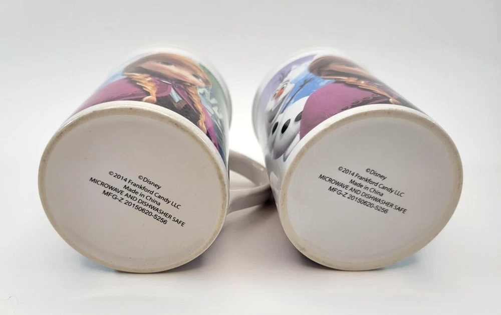 These Coffee Cups from the Frozen Movies features Sisters Anna and Elsa and the Snowman Olaf. They are beautiful cups for any season but especially the Holiday season. Set of 2 Each cup is approximately 4 inches Tall, 3 inches across the Top and 2 1/2 inches across the bottom. There are no chips. Each item is carefully packaged to prevent any damage and is shipped immediately with tracking.