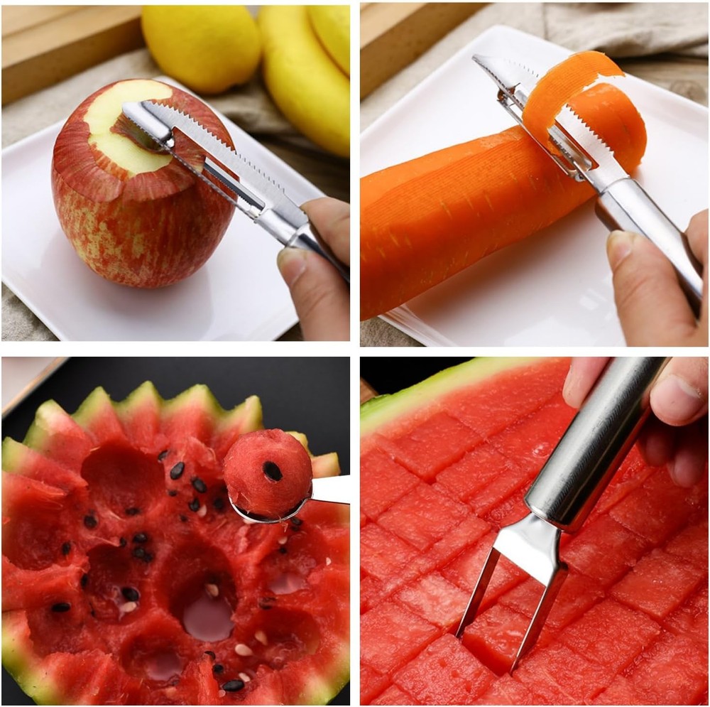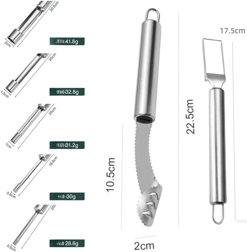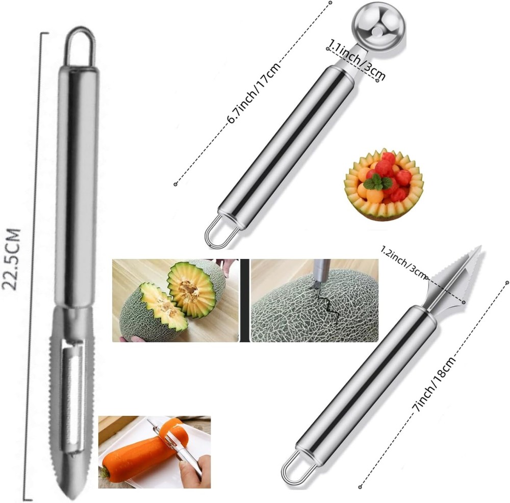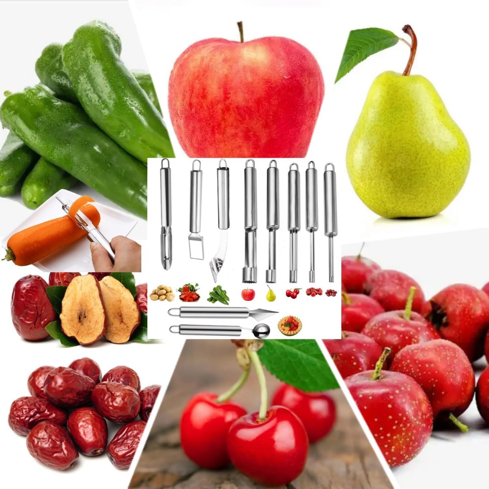 Free eBay listing template designed by dewiso.com Fruit and Vegetable Corer Tool,Kitchen Fruit Carving Knife, Multi-Function Stainless Corer and Pitter Remover Set for Apple, Pear, Cherry, Jujube, Red Dates, Chili,Potato, Watermelon(10 Pcs) FREE AND FAST SHIPPING! About this item The package includes(10Pcs): 6 Fruit and Vegetable Corer Tool,1 Fruit and Vegetable carving knife,1 Multi-Function Kitchen Peeler,1 Watermelon & ice cream scoop,1 Watermelon Cutter. High-Quality Material: These tools are all made of 304 stainless steel, boasts exceptional corrosion resistance and durability, ensuring that it will not rust over time and providing you with a healthy and safe cooking experience. Easy operation: Designed with serrated blades, the corers are easy to insert into fruits, and rotating or pushing them effortlessly removes the fruit core. Product We offer a 30-Day Return Policy on items which you are not completely satisfied with. You have the option for a full-refund or an exchange of the item. No returns are available on items shipped outside of the US . Shipping We offer Free Shipping to the US and ship within 2 business days of payment, usually sooner. We use UPS express shipping. That's why your products are usually delivered within 3 days . Contact We try our very best to make sure every customer is completely satisfied. If there's a problem , message us! We're happy to help. 24/7 live chat available.