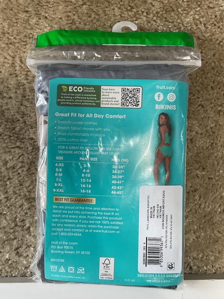 FRUIT of the LOOM 6-pack Size 6 (M) Soft Microfiber Multi-Color Women Bikinis