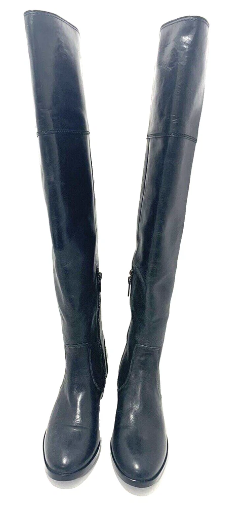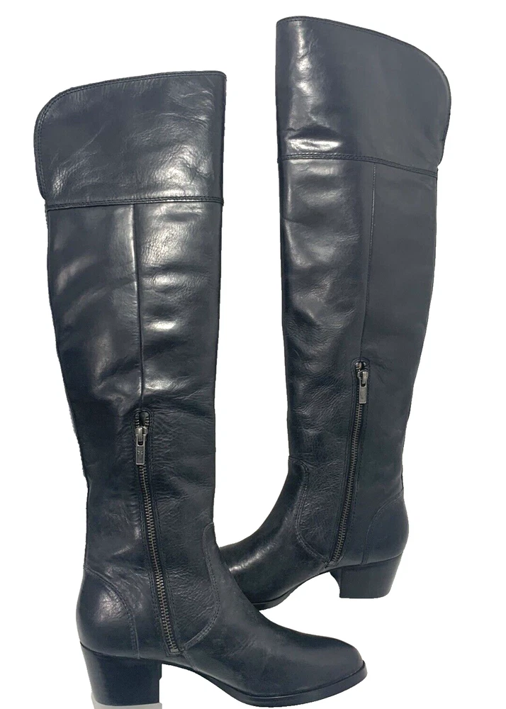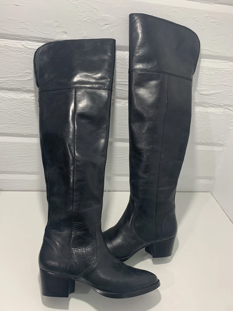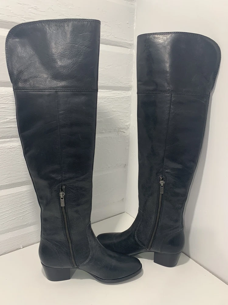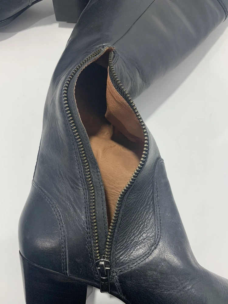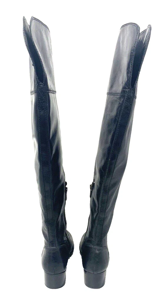 Frye Shirley Over The Knee Riding Boot Black Leather Zip Engineer OTK 5.5