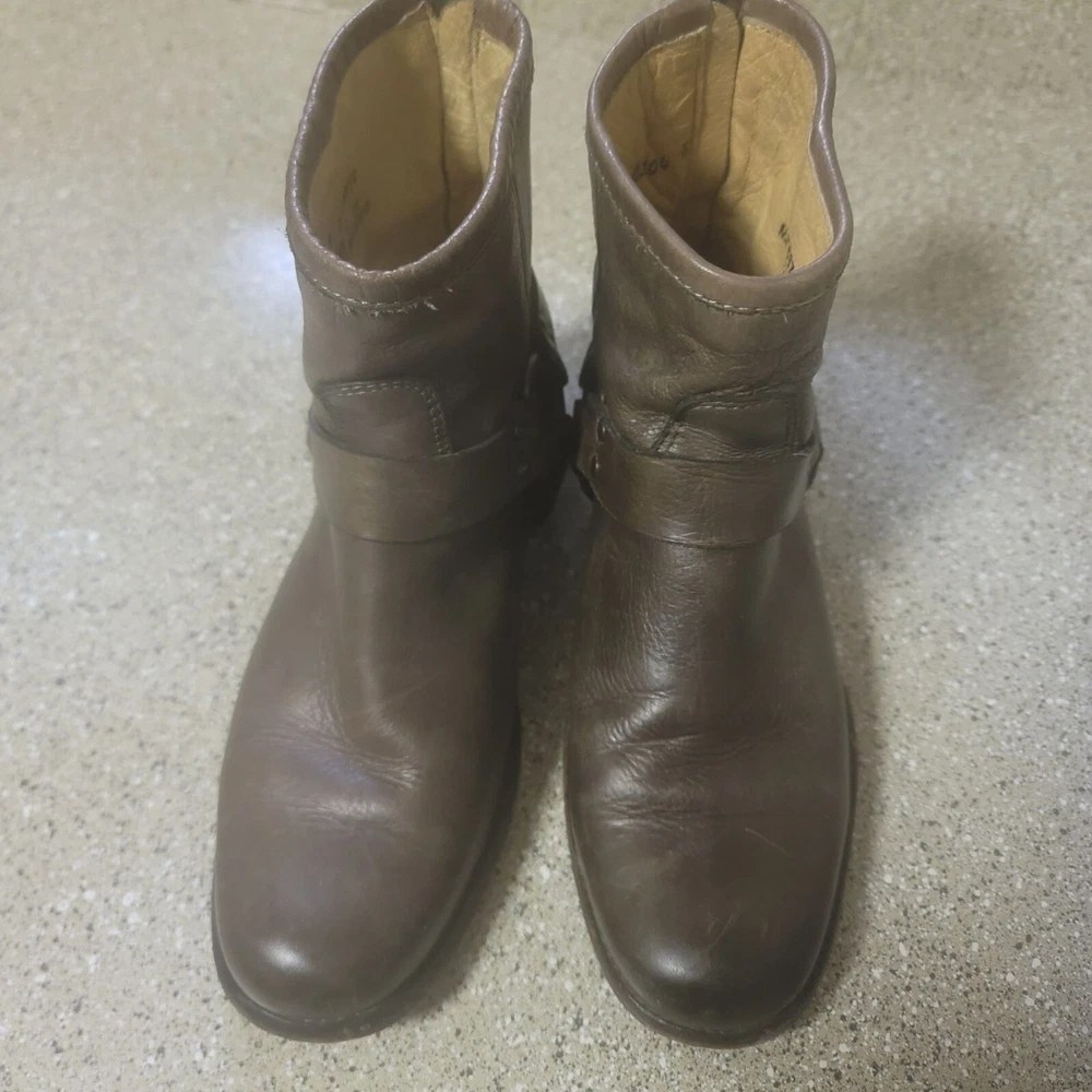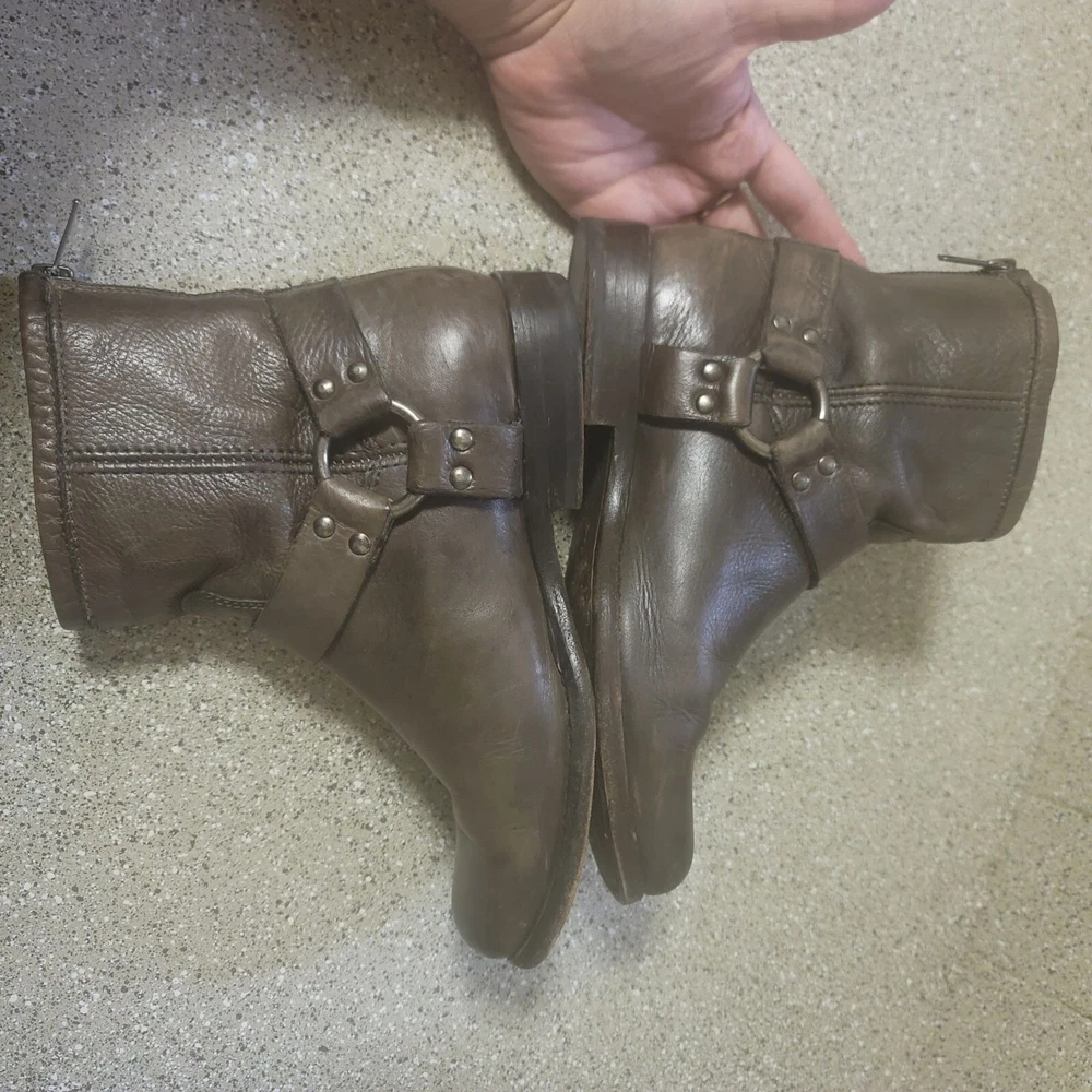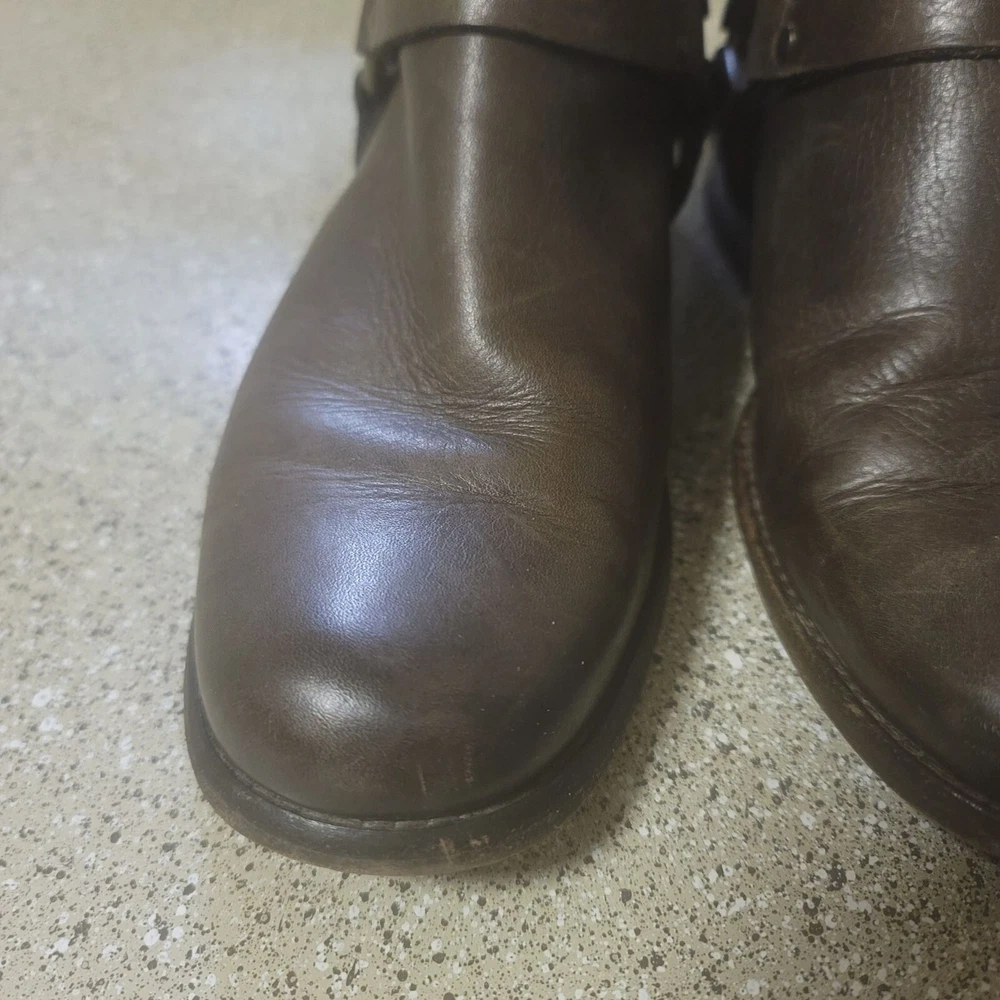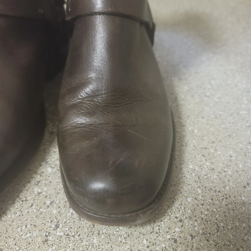 Frye Short Brown Harness Leather Ankle Bootie Size 6 Great pre owned condition- some general wear and scuffs see photos Smoke free cat friendly home