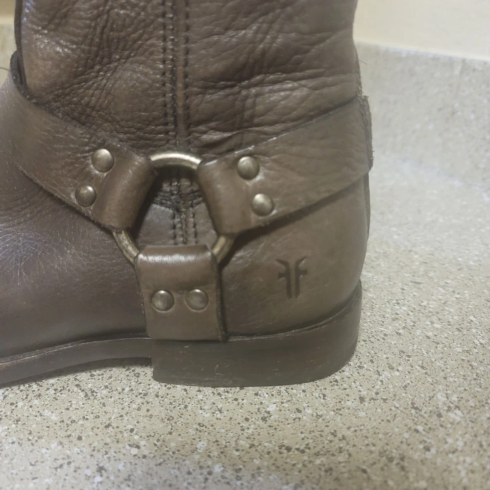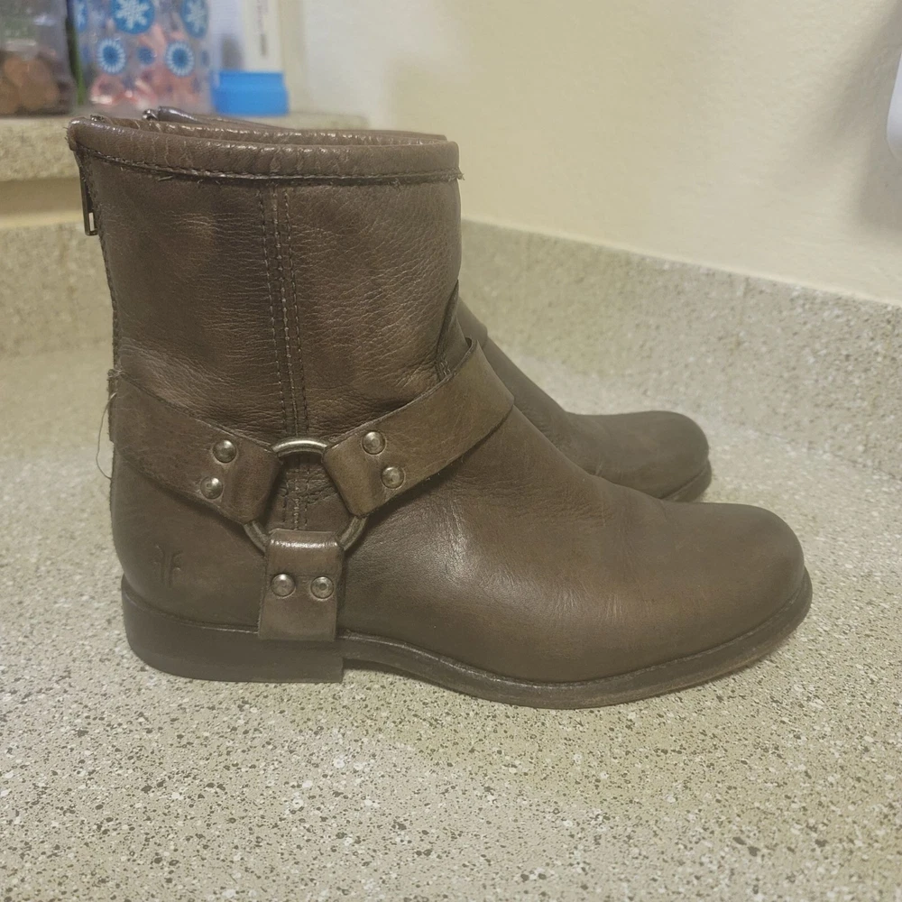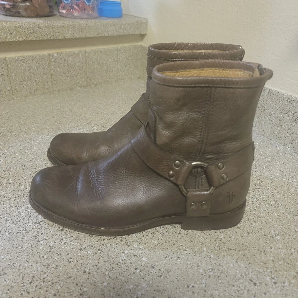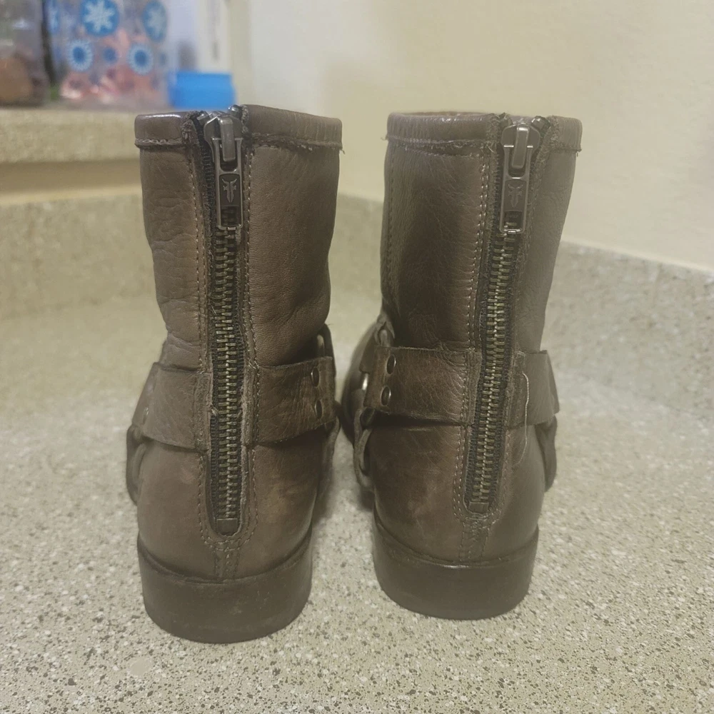 Frye Short Brown Harness Leather Ankle Bootie Size 6 Great pre owned condition- some general wear and scuffs see photos Smoke free cat friendly home