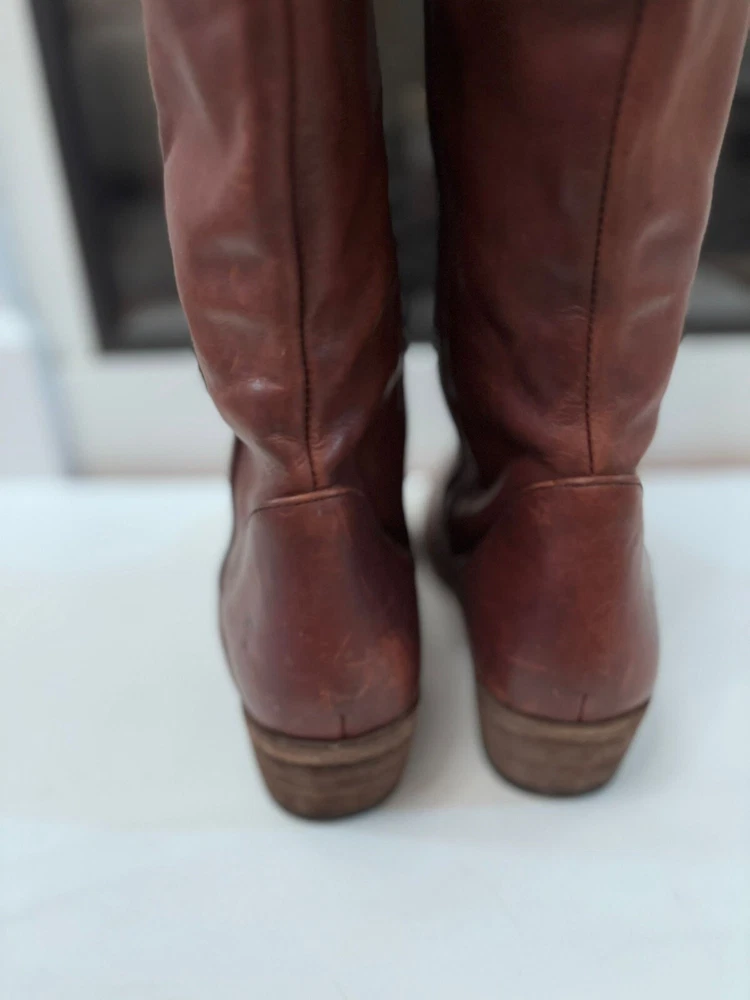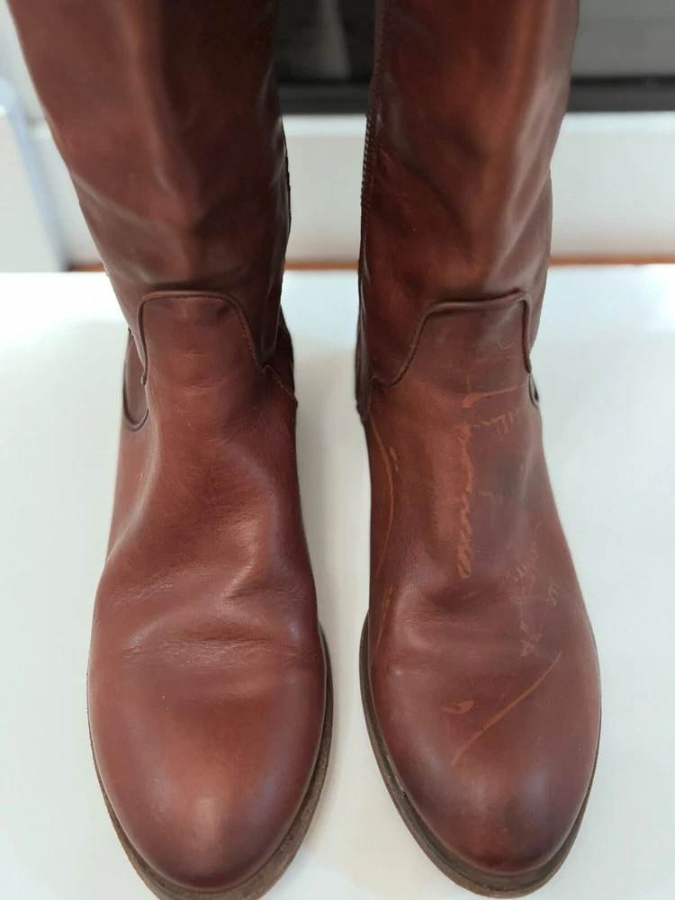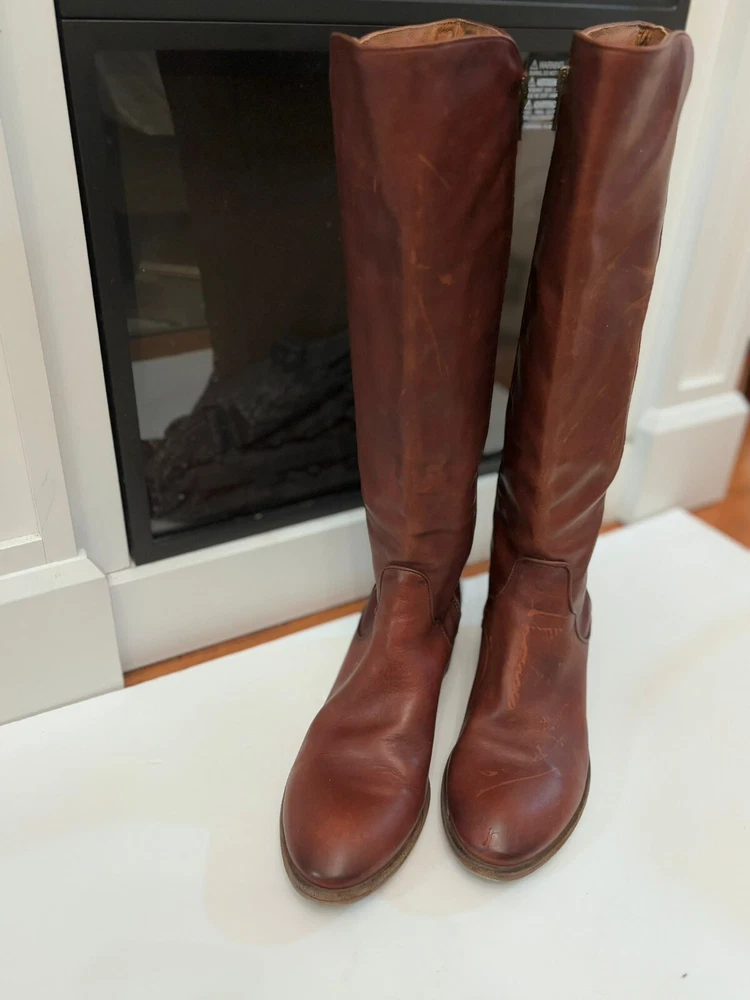 Frye Melissa Brown Riding Boots Size 8.5 Very good condition Normal scratches because the worn Almond toe Full zipper Made from leather