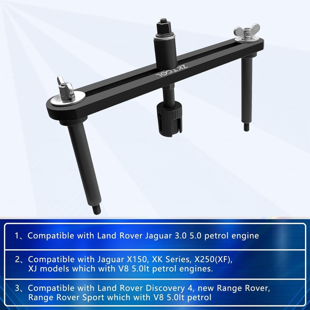 【Widely compatible】Compatible with Land Rover Jaguar 3.0 5.0 petrol engine. Compatible with Jaguar X150, XK Series, X250(XF), XJ models which with V8 5.0lt petrol engines. Compatible with Land Rover Discovery 4, new Range Rover, Range Rover Sport which with V8 5.0lt petrol engines. 【Newly upgraded】 Compared with traditional fuel injector puller removal tools, our tool adopts a lever principle labor-saving structure. You only need to install the tool and use an ordinary wrench to rotate the screw to easily remove the fuel injector without damaging it. It is a set of professional tools worth having 【It is easier to disassemble the fuel injection】 Normally, the injectors on vehicles are usually difficult to pull using traditional fuel injector removal tools, using the ZKTOOL upgraded fuel injector puller removal tool, you can easily remove the fuel injector in a small space 【Excellent performance and material】 This product adopts a horizontal stable structure, which increases the stability of the tools, and is made of high -strength metal materials. It has the characteristics of super strong service life and is not easy to damage. The combination of excellent performance and materials is an essential tool for removing fuel injection. 【Warm Tips】 In order to save your time, we hope that you can operate according to the video and operation steps we provide, so that you can have a better use process. Thank you for your support and cooperation!