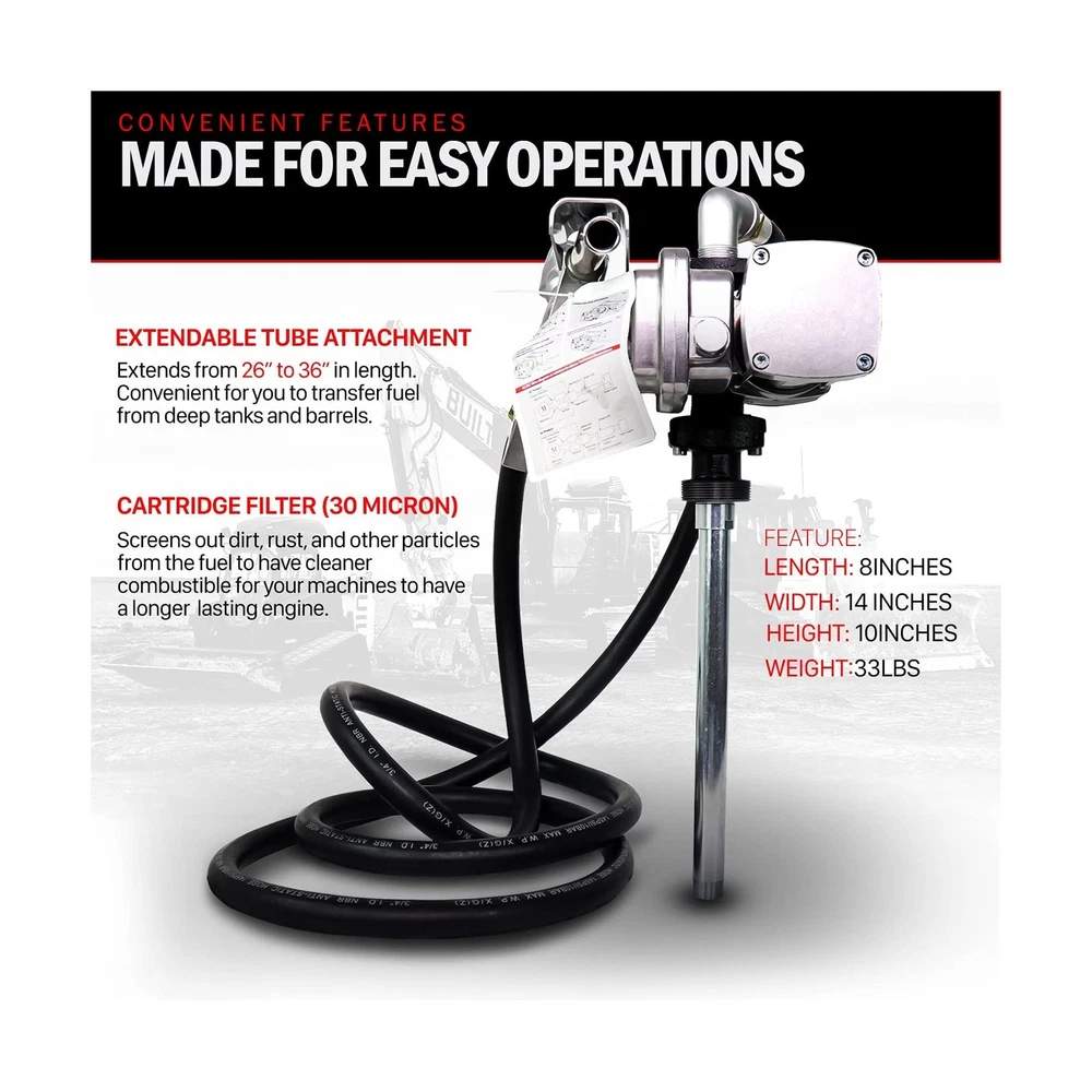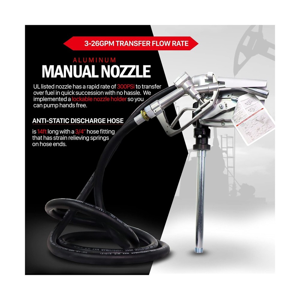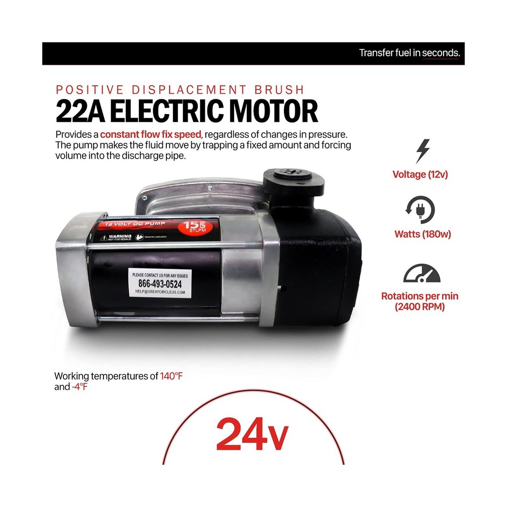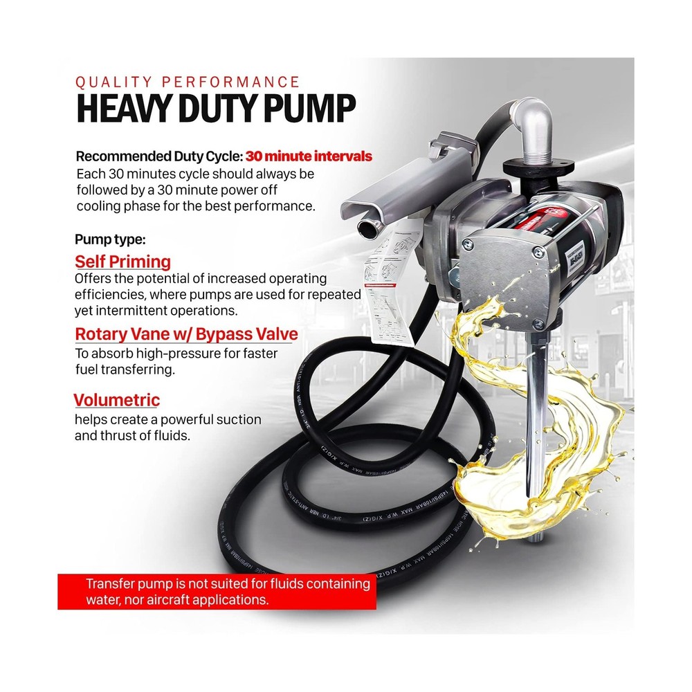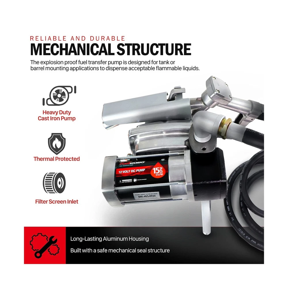 Fuelworks Fuel Transfer Pump Kit 15GPM/57LPM DC 12V 180W 22A Rotary Vane Motor with 14' Foot Anti-Static Discharge Hose & Filter, Extensible Suction Tube, 2" Inch Bung Adapter & Aluminum Manual Nozzle Description 12V 15 GPM fuel transfer pump Kit. Features: Product Details: Brand: Fuelworks Fit Type: Universal Fit Vehicle Service Type: Tractor Material: Cast Iron Item Weight: 33 Pounds Is Discontinued By Manufacturer : No Package Dimensions : 16.5 x 14.8 x 10.9 inches; 33 Pounds Item model number : 10305708A Date First Available : October 6, 2016 Manufacturer : Fuelworks Best Sellers Rank: #167,030 in Automotive (See Top 100 in Automotive) #665 in Automotive Replacement Electric Fuel Pumps #665 in Automotive Replacement Electric Fuel Pumps Customer Reviews: 4.2 4.2 out of 5 stars (251) Brand: Fuelworks Fit Type: Universal Fit Vehicle Service Type: Tractor Material: Cast Iron Item Weight: 33 Pounds Style: Rotary Vane Specification Met: ATEX, CSA, UL Auto Part Position: Rear Outlet Connection Size: 1 Inches Inlet Connection Size: 1 Inches Outlet Connection Type: NPT thread Body Material: Alloy Steel Inlet Connection Type: NPT thread Gas Type: Gasoline Mounting Type: Tank Mount Operation Mode: Electric-driven Product Grade: Performance Part Global Trade Identification Number: 23 Automotive Fit Type: Universal Fit Manufacturer: Fuelworks Package Dimensions: 16.5 x 14.8 x 10.9 inches Item Weight: 33 pounds Item model number: 10305708A Is Discontinued By Manufacturer: No Date First Available: October 6, 2016 Delivery We Do Not Ship Outside of the Continental US. Return Policy All items qualify for returns within 30 days of receipt. Buyer is responsible for return shipping on any item that is not damaged. Feedback We take our reputation seriously, we buy and sell online, so we understand the value of trust. If you are unsatisfied with your order, please contact us and we will work with you to resolve it to your satisfaction.
