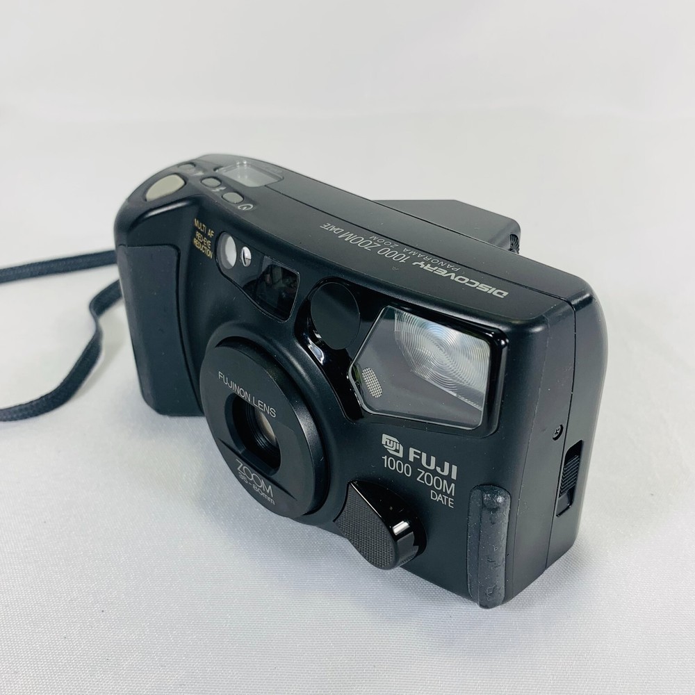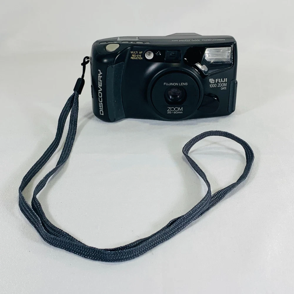 Capture timeless memories with the Fuji Discovery 1000 Zoom Date Panorama camera. This point and shoot film camera is perfect for anyone who wants to take stunning photos without the hassle of manual focusing. With its 35-80mm format and black color, this camera is both stylish and versatile. Featuring Fuji's signature Discovery 1000 technology, this camera produces stunningly clear and detailed photos. Whether you're capturing a loved one's smile or a breathtaking landscape, this camera is sure to impress. So why wait? Start taking pictures today with the Fuji Discovery 1000 Zoom Date Panorama camera. Camera is mechanically functional and is untested with film. Any imperfections are shown in photos. We can do combined shipping! See what else you'd like from our store! đź’™Retro and Beyond