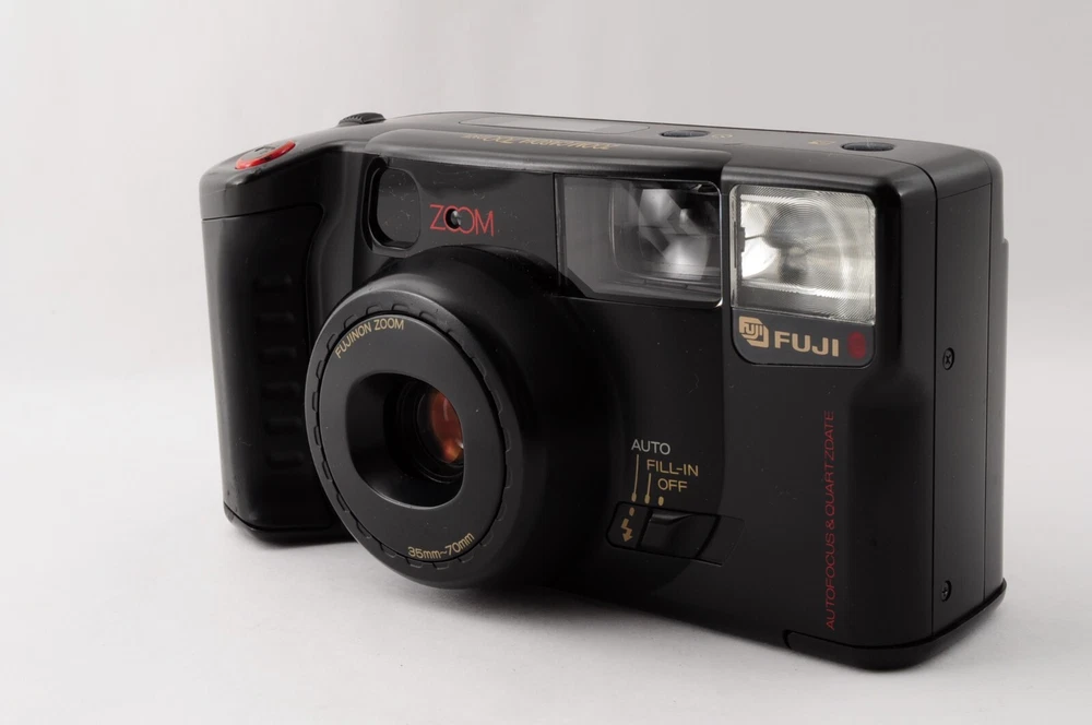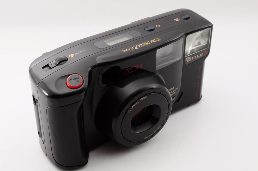 This Fuji Film Zoom Cardia 700 Date is a fantastic 35mm point-and-shoot! The black body looks sleek, and it functions perfectly—sharp viewfinder, smooth zoom, and no major flaws. Great condition with just minor dust, nothing affecting performance. Comes exactly as pictured, ready to shoot. A reliable vintage gem from Japan!