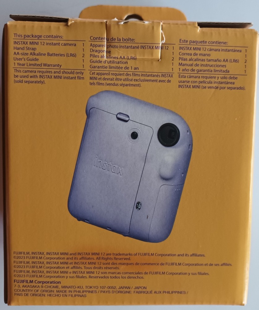 Fuji Instax Mini 12 Instant Camera & 2 Instax Mini Films Lilac Purple New in Box Brand New, Unopened Box with 2 x 10 sheet films