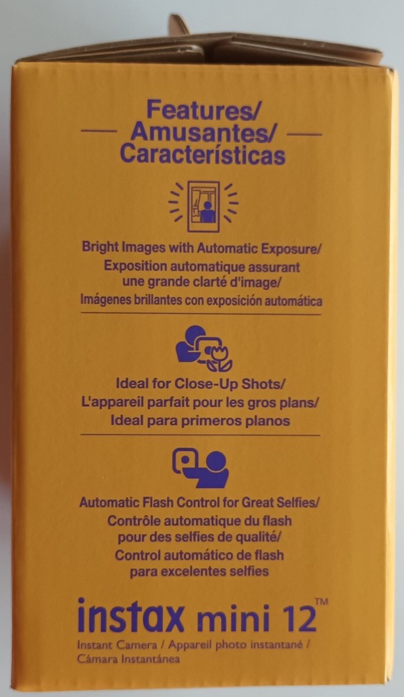 Series: Compact MPN: N/A Brand: Fuji Color: Lilac Purple Model: mini 12 Features: Auto Exposure Format: Instax Mini Focus Type: Auto Type: Instant UPC: 074101208160 gtin13: 074101208160