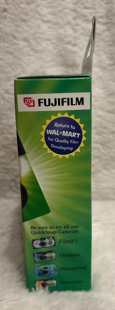 Capture every moment with the Fujifilm Disposable Camera Quicksnap Smart Flash. This single-use camera features a fixed focus and built-in flash, making it perfect for capturing quick snapshots. With a 400 speed and 27 exposures, you can be sure to get the perfect shot every time. This compact camera comes in a vibrant green color and is part of the Fujifilm Compact Series. The camera was manufactured in the United States in 2007 and is no longer available for purchase. Whether you're a photography enthusiast or just looking to capture memories without the hassle of a traditional camera, the Fujifilm Disposable Camera Quicksnap Smart Flash is the perfect choice. Date on box 06-2007
