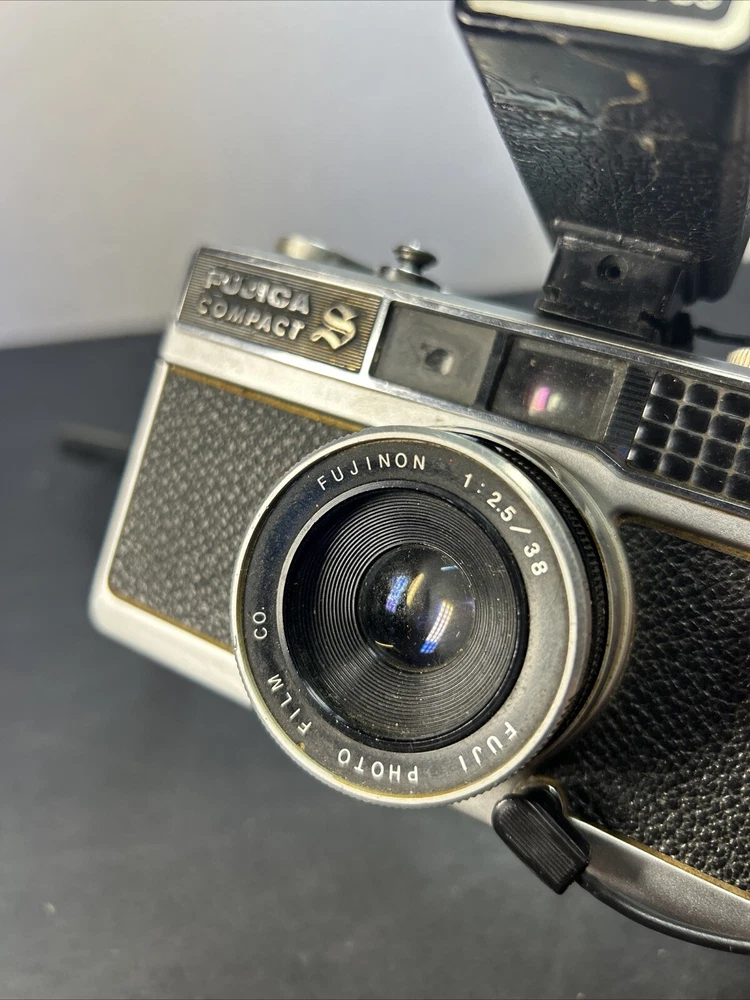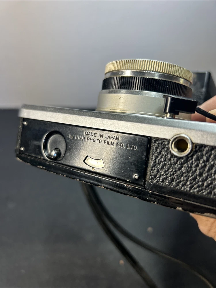 Untested This Fujifilm Compact S rangefinder camera is a great find for film photography enthusiasts. With its manual focus type and 35mm format, this camera is perfect for capturing stunning shots. Its silver color and built-in light meter and timer features make it a reliable and versatile option for any photographer. Made in Japan, this camera is part of the Kmart Focal 320 BS series and is sure to impress with its quality and performance.