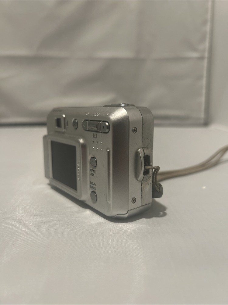 This is the Fujifilm FinePix A Series A500 digital camera in silver, featuring a 5.1 MP maximum resolution, 3x optical zoom, and 5x digital zoom. It includes features like direct print, date/time stamp, DPOF support, and PictBridge support. The camera uses AA batteries and weighs 8 oz.