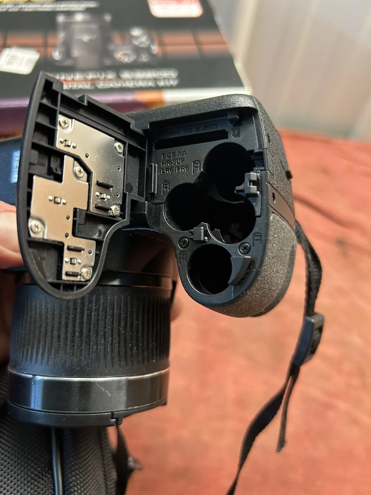 Camera was used a few times and then put away. We are selling this as is for parts or repair. It is not tested Comes with original box and carrying case as shown. If you have any questions please let me know.