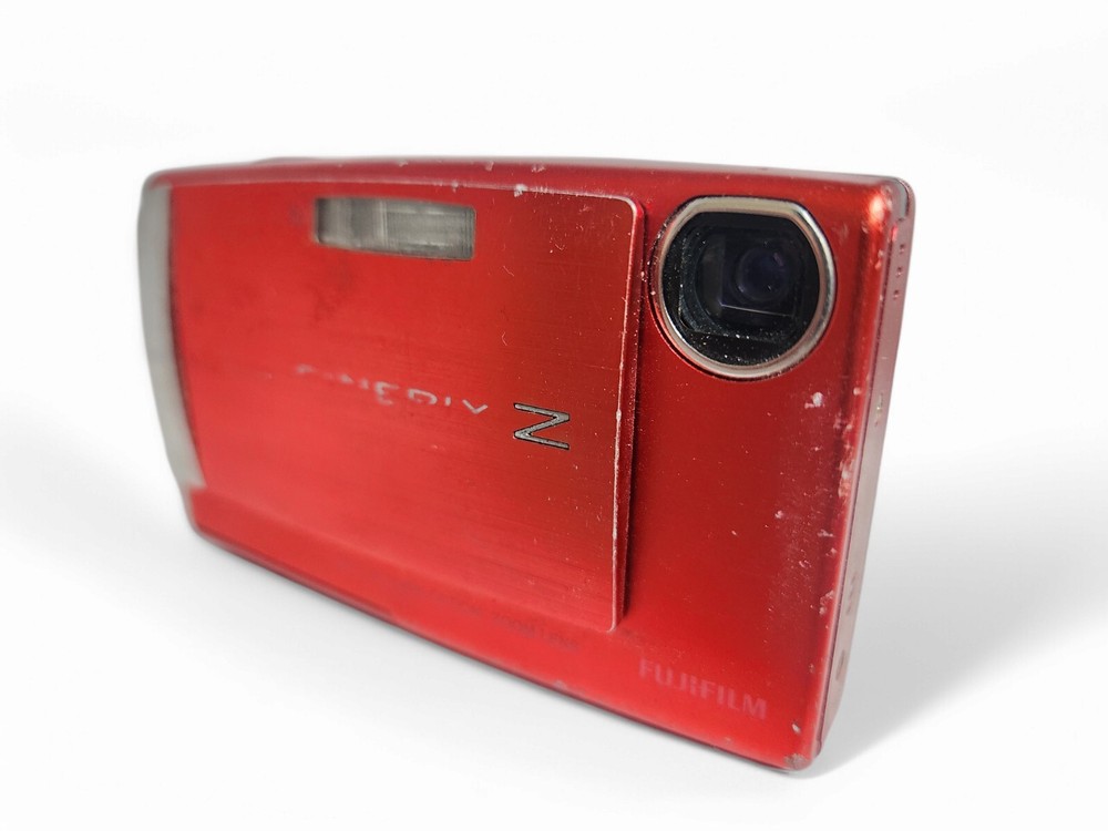 The Fujifilm FinePix Z10fd is a sleek and compact 7.2 MP The camera shows signs of use and has some minor scratches, but it remains fully functional. It features a 3x optical zoom lens, a 2.5-inch LCD screen, and ISO 100-1600 sensitivity, making it a great option for everyday photography. Despite cosmetic wear, it performs well with features like face detection, VGA video recording, and a user-friendly design. Ideal for casual use. No sd card or charger included If you have any questions please contact me