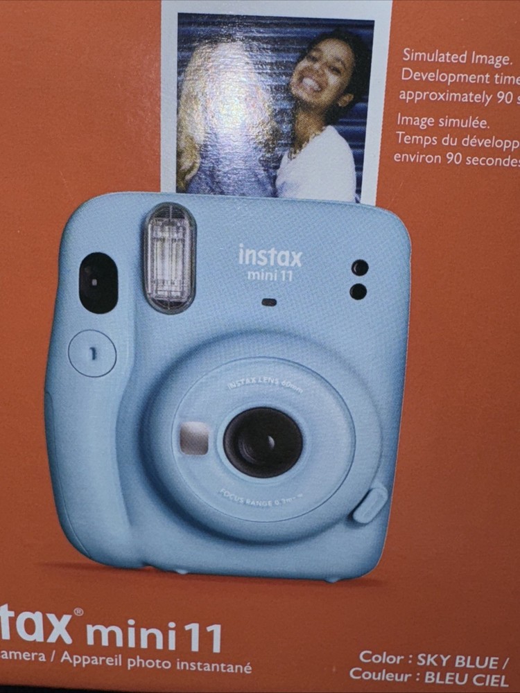 Film has never been opened! Camera has never been removed from the box! Fujifilm Insta mini 11 Sky blue Instant camera Film features, one touch bright images with automatic exposure You will receive a pack of Fujifilm that has 10 sheets per pack and you will receive two packs which gives you a total of 20 instant mini pictures Film expired 2/2025