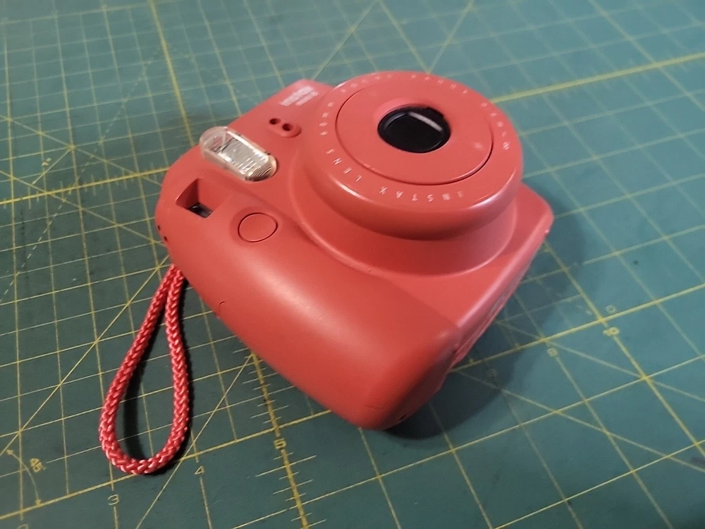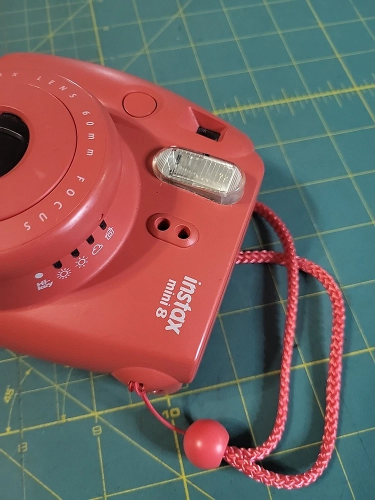 The product is a Fujifilm Instax Mini 8 instant film camera in Raspberry Red color. It is from the Compact series, with Instax Mini format. The model has been tested and is in working condition. Batteries and film not included .