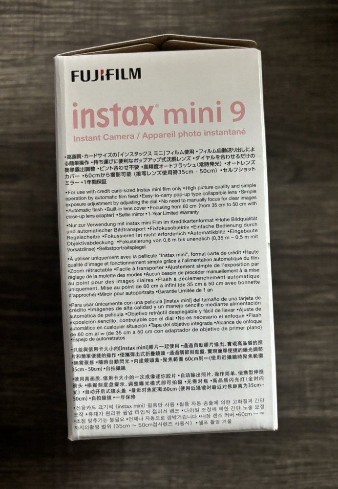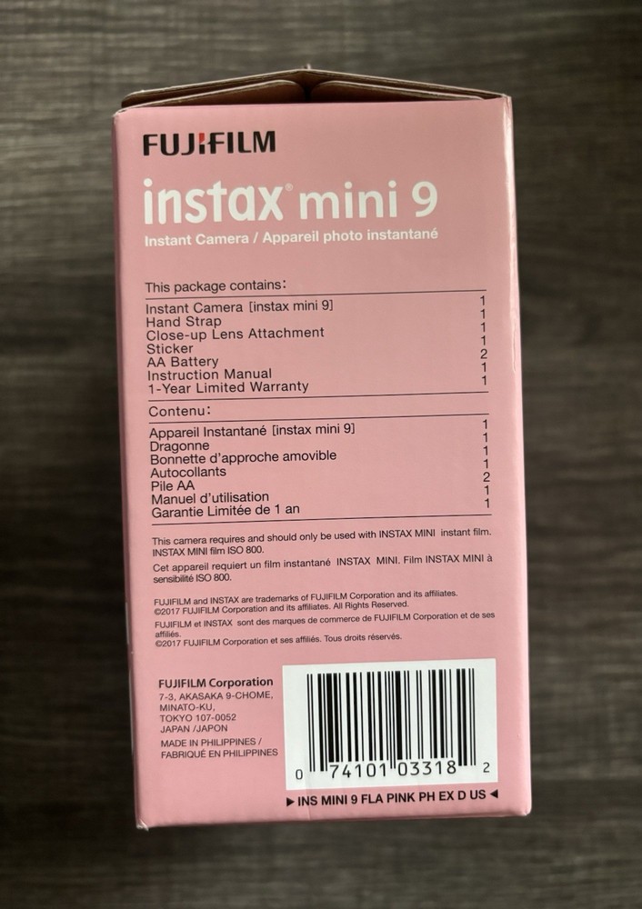 UPC:0793585086285, 0074101033182Item Weight:0.675lbs.gtin13:0074101033182Features:Auto Exposure, Built-in Flash_desc_:This camera is great for children learning to take pictures. It comes in vivid Flamingo Pink so it is easy to find. The camera is built for the novice and includes an optical viewfinder with a target spot to frame photos. There is a selfie mirror built into the lens that kids will love. The auto-flash and auto exposure mode make photo snapping a pleasurable experience. The camera comes with a close-up lens, too.Model:Instax Mini 9Focus Type:AutoCamera Type:InstantColor:PinkFormat:Instax MiniBrand:FujifilmGTIN:0074101033182Type:InstantFilm Type:InstantMPN:16550631Release Date:2017