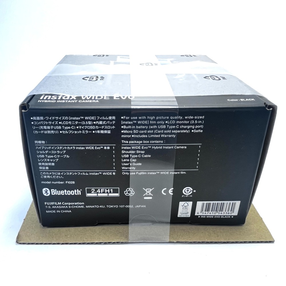 Fujifilm Instax Wide Evo Hybrid Instant Film Camera The description of this item has been automatically translated. If you have any questions, please feel free to contact us. Click here Quick shipments Safe payments 100% positive feedback Digital cameras Goals Flash Accessories Bags and backpacks Tripod Used Offers Fujifilm Instax Wide Evo Hybrid Instant Film Camera Ready delivery - shipped in 24 hours Hybrid photography: Combine the advantages of analog and digital for a unique experience. Wireless connectivity: Synchronize the camera with the app Instax Wide Evo ™ Through Bluetooth for remote controls, transfers and quick shares. Creative versatility: 10 Objective effects, 10 film effects and 6 styles for over 100 customizable combinations. Wide angle mode: Capturing panoramas and complete scenes with the integrated goal of 16 mm f/2.4. Print and sharing: Print instantaneous or transfer the images to the smartphone to keep them or share them easily. Intuitive design: Selfie mirror, 3.5 -inch LCD screen, manual knobs and macro mode for greater flexibility. Description There Instax Wide Evo ™ Fujifilm represents the evolution of instant photography, offering a perfect balance between the charm of the analogue and the functionality of the digital. Designed to allow maximum creative expression, this hybrid camera allows you to choose between printing images immediately or transfer them to your mobile device via the dedicated app Instax Wide Evo ™. The 16 mm wide angle lens f/2.4 captures large details and scenarios, perfect for breathtaking views or scenes rich in details. With the possibility of selecting between 10 Objective effects, 10 Film Effects And 6 Film styles, users can customize each image with a unique creative touch. The function Gradation control, through a ring on the objective, it allows you to regulate the intensity of each effect for greater precision. Among the additional features stand out the Selfie Mirror, which helps to compose perfect self -portraits, and the 3.5 -inch LCD monitor, which allows you to view and modify the shots before the printing. There Bluetooth connection Allows you to check the camera remotely, transfer images and access the DISCOVER FEED of the app, a virtual place to share inspirations and learn from the creations of other users. The camera is designed for practical use, with manual knobs reminiscent of vintage cameras, a charging door USB-C, a microSD cards slot to expand the memory and a base for integrated tripod for stable photos. It is also equipped with macro mode for close shots, an integrated Flash and an intuitive interface that simplifies each operation. Technical specifications Characteristic Detail Image sensor CMOS 1/3 "with primary color filter Actual pixels 4,608 × 3,456 (ON GRANDP) Internal memory About 45 images Memory expansion MicroSD/MicroSDHC (sold separately) Objective 16 mm f/2.4 (equivalent to the 35 mm format) Macro mode Supported for detailed first plans Flash integrated Flow from 30 cm to 1.5 m LCD screen 3.5 "color TFT, 460,000 points Connectivity Bluetooth 5.1 Compatible film Fujifilm Instax ™ Wide (sold separately) Internal printer 318 dpi, print time ~ 16 s Drums Integrated lithium ions, up to 100 prints per charge Charging time 2-3 hours via USB-C Camera size 138.7 × 125 × 62.8 mm Weight 490 g (without plastic wrap and accessories) Exclusive features Creative customization: Knobs for the adjustment of effects and styles directly on the camera. Wide angle mode: Activable through a front switch to capture large scenes. Energy saving: Automatic shutdown after 2 minutes of inactivity. Extended interface: Direct printing, remote shots and firmware updates via app. Content of the package 1x Fujifilm Instax Wide Evo ™ Hybrid camera 1x Adjustable shoulder strap 1x USB-C cable for charging 1x Cover 1x User manual Optional accessories (not included) Premium case: Made of like adjustable shoulder strap, protects and adds style to the camera. Instax ™ Wide Brushed Metallics film: With satin frame for a refined look, compatible with all Instax ™ Wide devices. If the VS. Pacco is taken or in stock we will notify you and do what is in our. possession to overcome the empasse. When you receive the product, please test it immediately and inform us if everything is ok and if so, we ask you to release positive feedback. Responsibility We do not take any responsibility for the losses of the objects after the delivery of the goods took place. Technical information The technical information entered, is obtained from the information published by the manufacturer of the articles entered in our catalog. Therefore, we reserve the right to modify/adapt the technical information of the products of the catalog, even without any notice. The images relating to the items are indicative, the characteristics of the items delivered can be slightly different from the photos presented in the catalog. Product availability We reserve the right to accept or not the orders that will be placed and in any case until the goods are exhausted. The items for sale can be temporarily not available, in this case the sigg. Customers will be notified by e-mail within a maximum of seven days from the receipt of the purchase order. In the event that the ordered article is no longer available, we use the right to cancel the request received, re -crediting the amounts possibly paid. Prices The prices of the products displayed are including VAT. Prices can be changed at any time, without notice. Privacy Policy With reference to the provisions of Legislative Decree 196/2003, containing provisions to protect confidentiality in the processing of personal data, we want to inform you that the personal data you provide, that is, recordings and/or acquired in the context of our activity, can form the subject of processing with or without the help of electronic means, in compliance with the legislation referred to above, for the institutional purposes of our ac