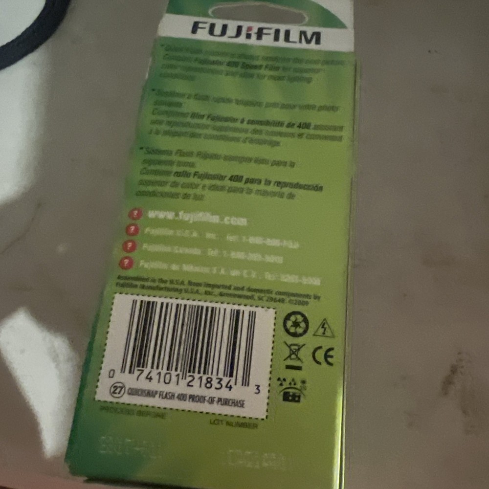 Capture your memories with the Fujifilm Quicksnap Smart flash 35mm Single Use Film Camera. This compact and easy-to-use camera features a built-in flash and a fixed focus to ensure you never miss a moment. The camera is black in color and was manufactured in 2009 in the United States. Take advantage of this camera's convenience and reliability to document your adventures. The Fujifilm Quicksnap Smart flash is a great option for anyone looking for a quality film camera. It comes in a unit quantity of one and belongs to the Compact series. Get your hands on this camera today and start capturing your world in stunning detail.