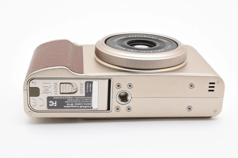 Bundle Description: Everything you can see in the photos Maximum Resolution: 24.2 MP Country/Region of Manufacture: Japan California Prop 65 Warning: N/A Battery Type: Lithium-Ion Brand: Fujifilm Series: Fujifilm XF Color: Champagne gold Item Weight: 0.61 lb Item Height: 2.53 in Optical Zoom: 1x Screen Size: 3 in Model: Fujifilm XF10 MPN: N/A Maximum Aperture: 2.8 Manufacturer Warranty: N/A Connectivity: USB Features: CMOS Sensor, Bluetooth, 4K Video Recording, 1080p HD Video Recording, Touch Screen Item Length: 41.0 mm Item Width: 4.42 in Type: Compact Digital Zoom: N/A