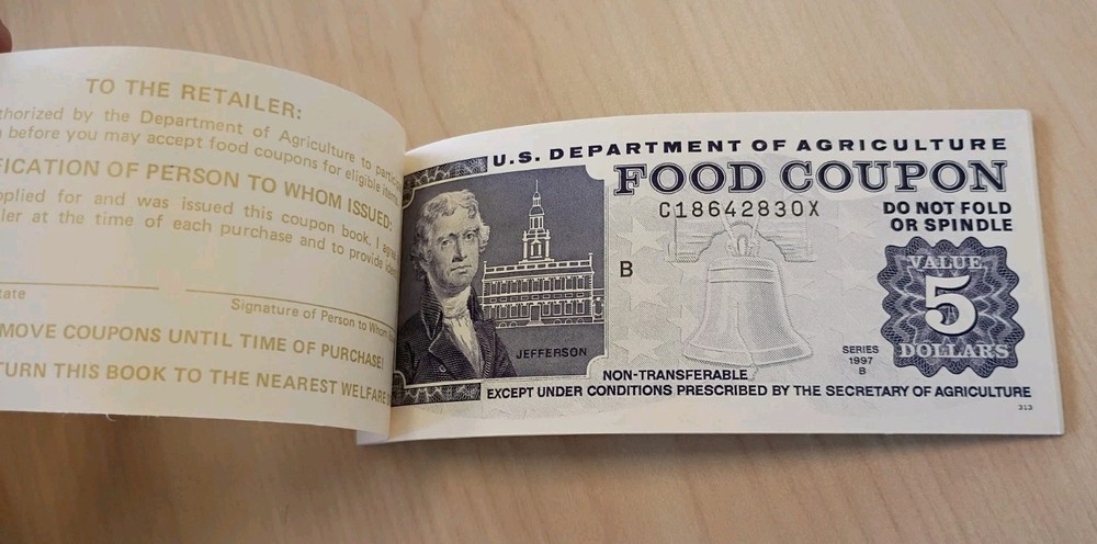 Full $40 food stamp coupon book Series 1997 B stamps 8x $5
