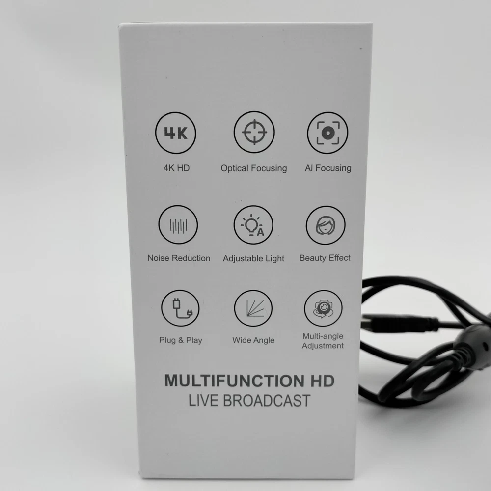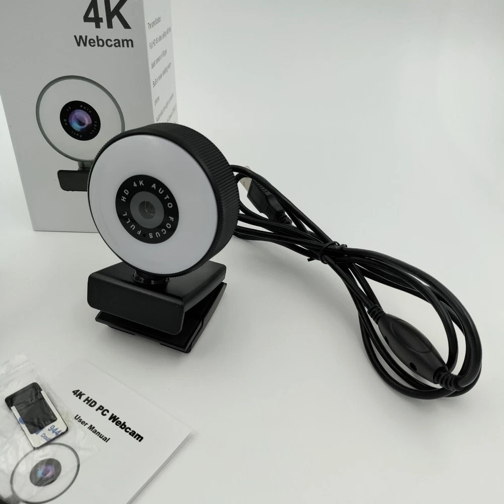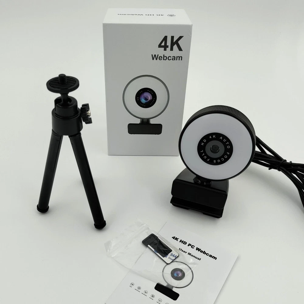 Full 4K HD AUTO-FOCUS Duel Stereo Microphones WEBCAM Noise Reduction, Beauty Effect, Optical Focusing, AI Focusing, Adjustable Light, Low Light Auto Adjust, Wide & Multi-Angle Adjustments. Includes Everything Shown. Plug & Play. Use with the Included Tripod or Hang off the Desktop/Laptop Monitor. Shipped Quick with Care from a Trusted US Seller.