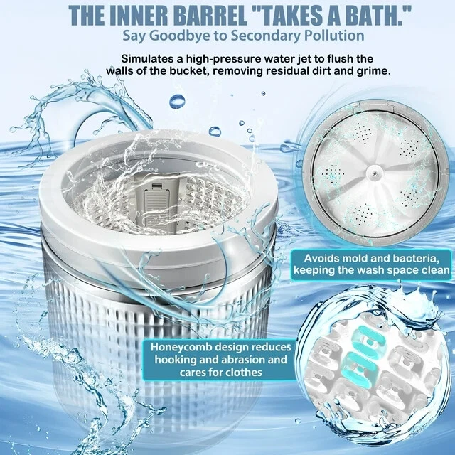 Description About this item 【MULTIFUNCTIONAL】This washing machine offers 10 washing programs and 8 water levels to choose from, providing personalized laundry options and freeing your hands. The LED screen ensures clear operation even in dim environments. 【LARGE CAPACITY & SMALL SIZE】With a capacity of 17.8lbs, this portable washing machine offers ample space for your laundry needs. Despite its large capacity, it has a compact size of only 19*20*35inch, making it perfect for apartments, dormitories, and RV camping. 【SMALL STATURE, BIG POWER】Using a powerful 480W motor, clothes are washed efficiently and fast using the detergent of your choice. Like larger household machines, the repetitive action of agitation and fast moving water combined with soap helps to remove dirt and stains, leaving you fresh laundry. With a transparent lid, you can watch it all happen. 【FULL AUTOMATIC MACHINE】This machine features a built in drain aluminum pump and a drainage tube which allows you to easily drain out dirty water, which is good choice for apartment or dorm doing medium or little weight laundry. Package Contents: 1 x Portable Washing Machine 1 x User Manual 1 x Drain Hose 1 x Inlet Hose Payment 1 . We accept PayPal only. 2 . Payment should be completed within 4 (Four) days of auction closing. Or unpaid dispute will be filed for closing auction. 3 . Sales Tax of 9% will be applied for orders shipped within the state of California 4 . We will leave a positive feedback immediately after payment is received. We appreciate a positive feedback as much as you do. If for some reason there is any issue with the purchase, please contact us prior to leaving feedback, and we will be glad to work with you to have it resolved. Shipping 1 . We Ship to United States ONLY. 2 . Ship from two warehouses and only to eBay ADDRESS. Package handling only takes 1 business day at our warehouse, so please make sure entering correct payment and shipping information before checking out. Once your payment is completed, pls leave ebay note if the changes are needed before we send the product. 3 . Truck company: 3-8 business days. | USPS: 2-6 business days. | UPS/FEDEX: 3-5 business days. 4 . Lccal pick up is available. Warranty and Guarantee 1 . All of our items come with a 30-day return policy. We ensure all our items are new and in excellent condition prior to shipping. In the event that you receive the item that is not to the standards above, please contact us via e-Bay messages. All returns must be in new original condition as received and should be shipped with delivery confirmation 2 . We ONLY accept the return for original package. Please make sure that item has NO man-made sabotage. Used items will not be accepted for return. 3 . We reserve the right to refuse any returns for objective reasons. 4 . All NON-seller mistake returns for refund are subject to 20% re-stocking fee and buyer should pay for the round-trip shipping fee. (E.g. you bought wrong model or wrong color). Feadback 1 .Any problem after receiving our goods,please contact us before leaving Neutral/Negative feedback.We promise to help you solve it asap,and make you feel satisfactory absolutely. 2 . Please DO NOT leave negative feedback without asking for help. Please do not leave negative or neutral feedback if you haven't received item in 30 days, because we have mentioned the shipping time repeatedly.