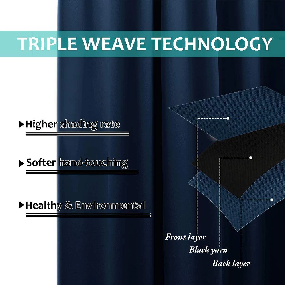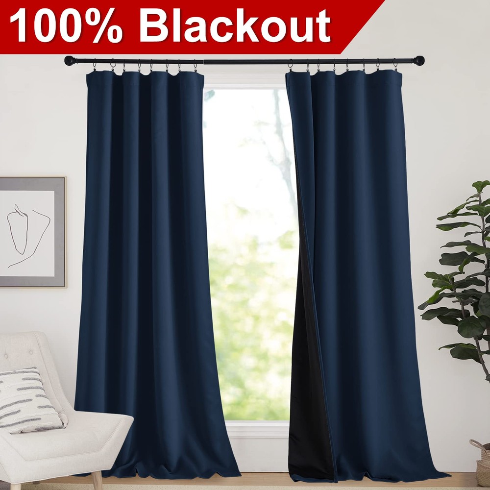 Full Blackout Curtains 108 Inches Rod Pocket Noise Reducing Window Panels