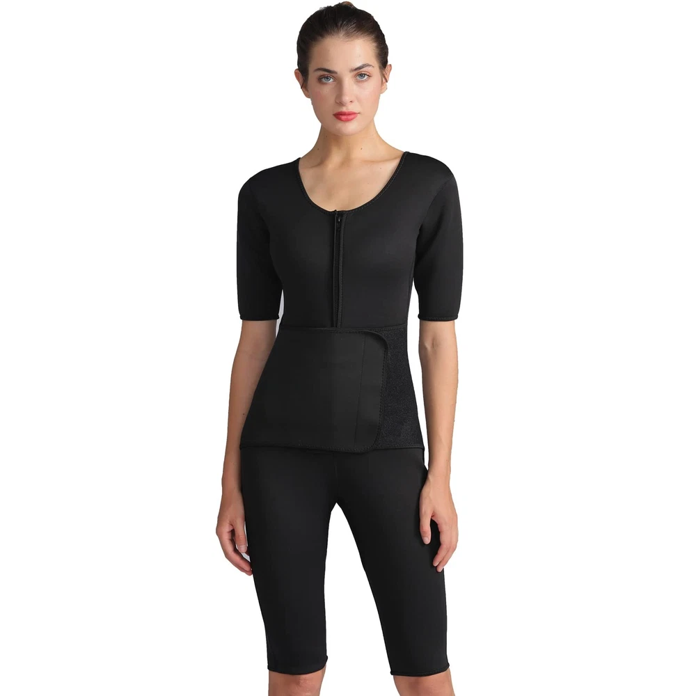 This Full Body Sauna Gym Sport Suit has sauna-like qualities, which stimulate better perspiration and help you lose inches in no time. The Full Body Sauna Gym Sport Suit has two main effects: Causes more perspiration and sweat Compresses and molds certain parts of your body More about the Full Body Sauna Gym Sport Suit: Made from NEOPRENE, which was used by divers to preserve body heat under the water. Causes a higher perspiration level making it easier to eliminate toxins and excess water. Very comfortable. Can be used everyday at home, work, or the gym. Moves with you through any type of exercise, whether it be MMA, boxing, aerobics, calisthenics, etc. Sweat more than usual Increase your metabolism Burn more calories Increase your mental and physical endurance. Detoxify your immune system. Increase flexibility, decreasing the likelihood of injury. Hot Sweat Sauna Suit Interior: Neoprene. Zipper front closure + adjustable waistband with velcro closure. Weight Loss shaper burns fat and accelerating your quick weight loss,wear under clothes provides your abdominal compression helps flaten your tummy ,sleeves and pants reduce excess weight on legs and arms. Hot sweating suit body shaper heating up your belly and making you sweat 3 times more, it provides enought compression and support, helps on musule recovery and prevent injuries remove toxins and slimming your waistline. The thermal layer will keep your body warm in cold days while still keeps your body dry and comfortable. EFFECTIVE CORSETS SHAPEWEAR:the waist shaper help smooth your after pregnancy or c-section tummy flabby and love handles,helping you look slimmer.It also helps postpartum recovery all process,reduce swelling,tighten skin,control tummy,support back,relief waist pain,ease transition of uterus and shrink it down to normal size,make your body get back to its original shape.