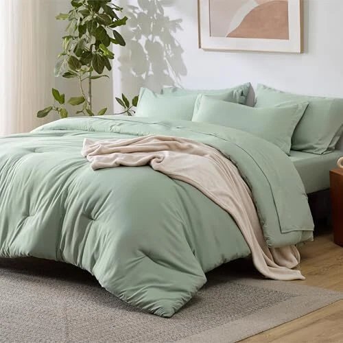 Return Policy Fast Delivery Trusted seller Full Comforter Set Sage Green, 8 Pieces Prewashed Full Size Bed in a Bag with Soft Fleece Bed Blanket, Down Alternative Bedding Set for All Seasons, Sheets, Pillowcases & Shams Product Description Complete 8-Piece Set: This exclusive 8-piece set features an added flannel blanket, perfect for creating a layered, cozy look. Ideal for both bed and sofa, it provides extra warmth and versatility for any space. Premium Brushed Fabric: The 8-piece set features brushed fabric, which enhances the softness and durability. The material feels gentle on the skin, offering long-lasting comfor for a cozy night's sleep. High-Quality Filling: Filled with down alternative fiber, the bedding provides exceptional softness and fluffiness, delivering a luxurious and comfortable sleeping experience. Soft Flannel Blanket: The double-sided flannel blanket is both soft and breathable, providing excellent warmth and comfort, making it a perfect addition for year-round use. Certified Safe and Easy to Maintain: This product is Standard 100 by OEKO-TEX certified, ensuring it meets the highest testing criteria for harmful chemicals and is harmless for humans. Additionally, it is easy to maintain and machine washable. Simply machine wash in cold water on a gentle cycle for a like-new restoration. What You Get: This full bed-in-a-bag includes 1 comforter (82" x 86"), 1 flat sheet (81" x 96"), 1 fitted sheet (54" x 75" + 14"), 2 pillowcases (20" x 30"), 2 pillow shams (20" x 26" + 2"), and 1 flannel blanket (60" x 50"). All you need to create a cozy, luxurious bed with layer of comfort. Shipping Returns Payment Shipping Shipping is FREE to all addresses other than APO/PO boxes in the lower 48 states. All our stock ships from US-based warehouses. Shipped via USPS or UPS (depending on location and package weight) Unless stated otherwise, all orders will ship within 24-72 hours of your payment being processed. Check our feedback to see the great reviews of FAST shipping we offer. Returns Seller does not accept returns Payment We currently accept payment via eBay managed payments only. Once payment is cleared, we will dispatch your shipment within 1-3 business days. Please refer to the "Shipping" tab for more information regarding shipping speed to your destination.