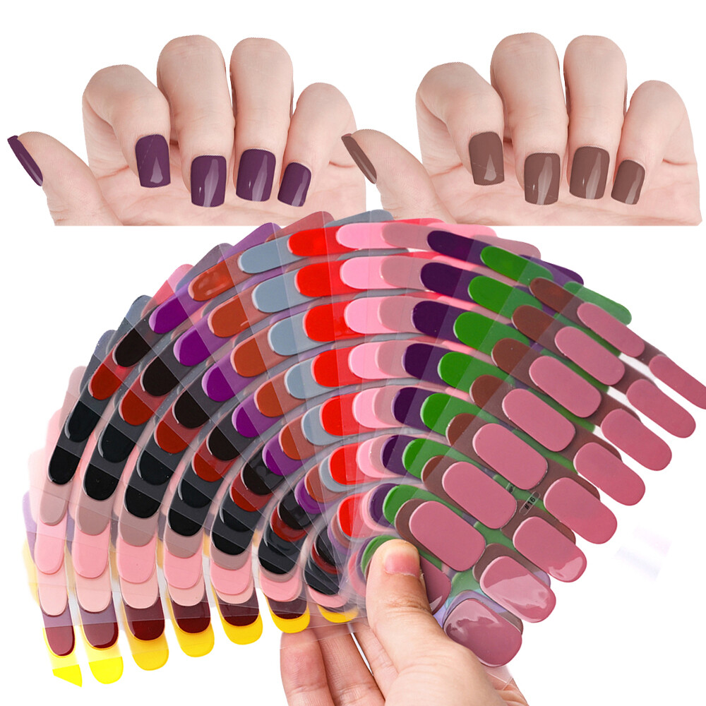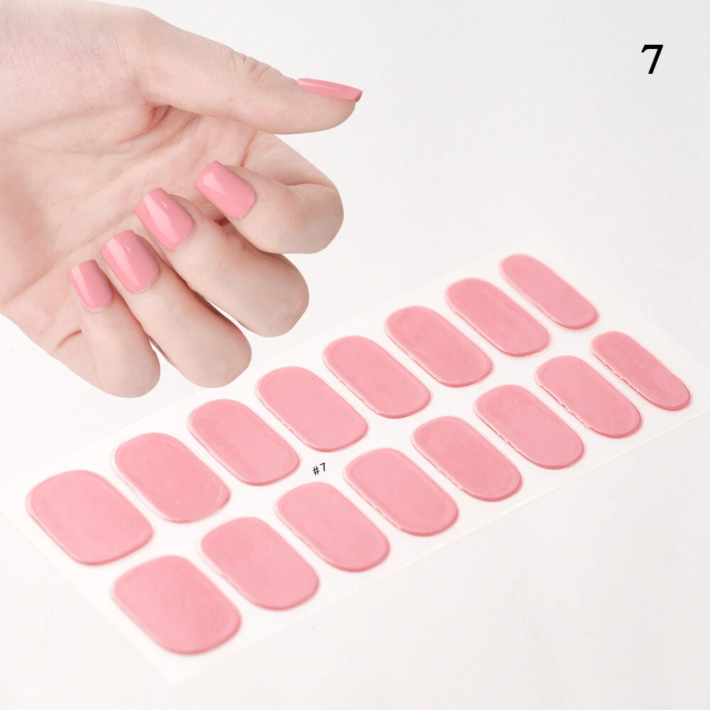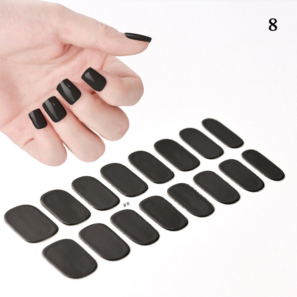 Full Cover Wraps DIY Manicure Nail Sticker 3D Glossy Foil UV Lamp Cured 100% Brand New Color:as the picture shows QTY:16 Tips/Sheet Package Include: 16 Tips/Sheet Nail Stickers HOW TO USE: 1. Smooth your nails with the nail file and clean your nails with cotton pads. 2. Choose the right size that fits your nails, peel off the protective films of the Gel Nail. 3. Place on the fingernails gently. 4. Use a small wood stick to press and flatten the edges of the nails. 5. Use scissors to cut off the excess gel nails, and then file the perfect shape with a nail file. 6. Cure the gel nails under UV/LED light for about 45 seconds. 7. Smooth the edges with a nail file. 8. Done! How to remove: 1.Soak nails in warm water for 3-5 minuter. 2.Remove it with a wooden wand and clean glue with alcohol pad. ATTENTION: 1: Please use it immediately after opening it. 2: Please keep it in a film container after use, and use a sealing strip to avoid drying out. 3: Please keep it away from young children, and avoid eating by mistake. 4: Do not use it when your skin has a cut. 5: The colors may exist slight differences due to different screens. STORAGE: Please store in dark, cool and dry place to avoid hardening due to the light.