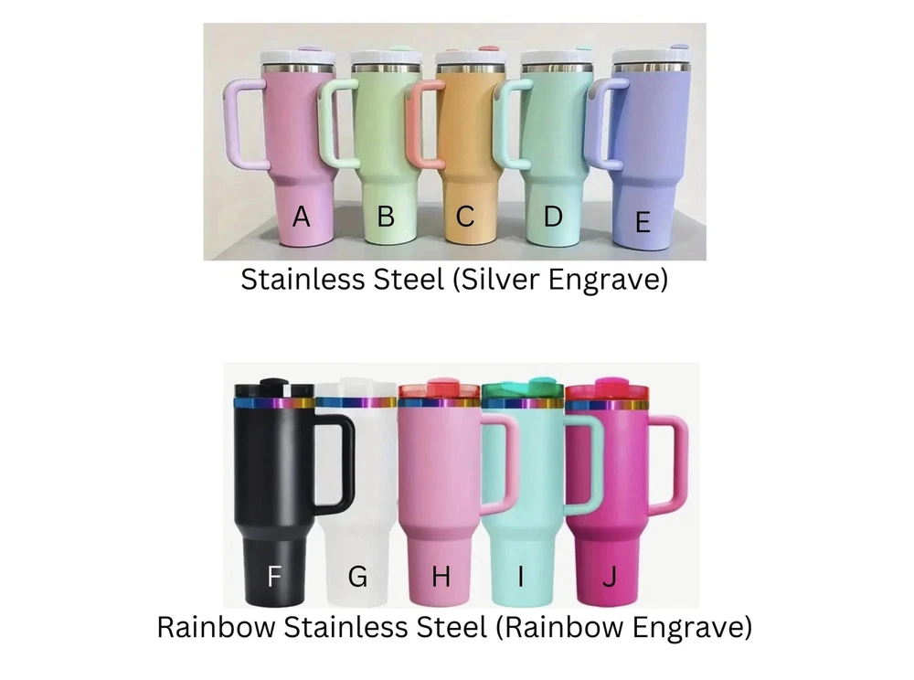 Calling all custom gifters and customizers. We can create a custom full wrap for you! This includes any base design of your choice and up to 2 revisions. Designs will wrap seamlessly around the umbler - unless you want it differently. Add any ideas, characters, movies, quotes, books, games, anything you like. Mix and match to your hearts content. Made with high-quality, stainless steel and double insulated, our tumblers are built to last. Some colors are coated to add a unique engraving effect. These fit all Stanley accessories, including lids, toppers, sleeves, and more. They are full dupes of the Stanley Quencher H2.0 Tumbler, down to the matching lids, handles, and color inlays on the tops and handles as well. No sweating, keep your drinks cold for hours. If your desired color is not pictured, check out our other listings or our TikTok for videos of all available colors and design ideas. Upgrade your tumbler game and join the custom world with our high-quality, custom engraved Quencher Tumbler Available in 30 oz Stanley Dupe, 40 oz Stanley Dupe, and Genuine Stanley Branded variations . Order yours today and get ready to impress! Looking for a custom Stanley Tumbler? Select it in the dropdown! Looking for smaller 30oz options? Select it in the dropdown! We also take custom design requests, perfect for business logos, promotional items, gifts, and more. Some Product Photos may show varying tumbler styles (30 oz, dupe, 40 oz dupe, and Stanley-branded variations). Please select the tumbler type from the drop-down menu that you wish to purchase! We offer non-branded and genuine Stanley-branded options. The cup you will receive will be the color you select in the drop-down menu, with the design pictured in the listing. The design may be modified using the personalization field, and it may also be modified to accommodate the size of your cup. Colors vary by monitor, we try to make sure our colors are as close as possible to real life, but slight differences in display color vs actual color may occur.
