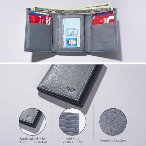 Return Policy Fast Delivery Trusted seller Full Grain Genuine Leather Wallet for Men, Handcrafted Travel Wallet, Minimalist Mens Slim Trifold Wallet, Anti-Theft RFID Blocking Wallet for Men's, Tri-fold - Grey Product Description PARTNER FOR LIFE: Our Handmade Leather Wallet for Men feature a distinct quality feel that is unmatched. The distressed rustic finish offers rugged durability that ensures your wallet stands the test of time. Crafted with premium quality leather, Get ready to make a bold fashion statement and turn heads with our stunning collection of leather wallets. ANTI THEFT - RFID BLOCKING: Protect your valuable information with confidence. Our wallets feature advanced RFID SECURE Technology, to effectively block 13.56 MHz or higher RFID signals. Safeguard your personal data from unauthorized scans with our anti-theft security feature. COMPACT YET SPACIOUS: Tri-fold Wallet is perfect for travel and everyday use. With ample space to hold 8+ cards and plenty of cash, it keeps your essentials safe and organized. Experience convenience and style combined in one sleek design with 10.8x8.7x1.5cm. GIFTING PURPOSE: This leather wallet makes a perfect gift for the men in your life. Whether it's for an anniversary, birthday, graduation, or any occasion, this stylish and functional wallet is sure to impress. Crafted from premium leather, it's a thoughtful and practical gift they will use every day. THE TOP-QUALITY LEATHER: Experience exceptional quality with our products, crafted from the finest top-quality leather. We take pride in using sustainably-sourced leather from partners who prioritize ecological practices, ensuring that our products not only look great but also promote ethical and sustainable consumption. You can return the item within 30 days if you are not satisfied with the Product, no questions asked. Shipping Returns Payment Shipping Shipping is FREE to all addresses other than APO/PO boxes in the lower 48 states. All our stock ships from US-based warehouses. Shipped via USPS or UPS (depending on location and package weight) Unless stated otherwise, all orders will ship within 24-72 hours of your payment being processed. Check our feedback to see the great reviews of FAST shipping we offer. Returns Seller does not accept returns Payment We currently accept payment via eBay managed payments only. Once payment is cleared, we will dispatch your shipment within 1-3 business days. Please refer to the "Shipping" tab for more information regarding shipping speed to your destination.