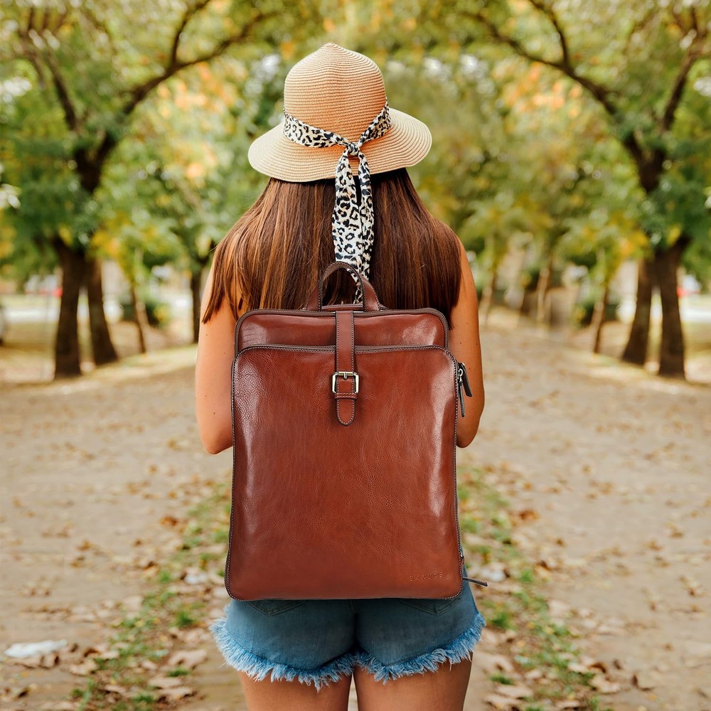 Full Grain Italian Leather Backpack for Women: It is a backpack purse made of full grain vegetable tanned leather imported from Italy,,rust-proof zinc alloy hardware and durable polycotton twill lining. Please note this leather backpack purse for women has unique Sfumato leather craft and wear-resistant edge paint to create a stylish vintage look. Portable Convertible Backpack Purse for Women: It can be easily convered from a backpack purse to a shoulder bag or a sling bag via an adjustable strap. Besides, it has a portable comfortable handle. So, It is very convenient for multiple occassion like travel,gathering, dating,party,shopping,etc. It can be used as travel backpack for women, laptop backpack for women and backpack purse for women. Leather Laptop Backpack for Women: 3 compartments are designed for this backpack purse.It can hold the items such as 14 inch laptop,cell-phone,wallet,key,cosmetics,etc.Besides,the U-zip closure creates easy open and close for this women's laptop backpack. Luggage Strap in rear zipper pocket can attach this women's backpack purse onto a rolling luggage for travel.The shoulder strap on the back is adjustable according to your height. Full Grain Italian Leather Backpack for Women:It is a backpack purse made of natural full grain leather from Italy.The leather is tanned by natural vegetable tanning and hand-dyed by natural dyes in order to greatly keep natural texture of visible grains,pores,wrinkles,etc.So, it is Non-Toxic and Friendly for enviroment.This leather has the good hand feel,glossiness,breathability and durabilility. The more leather backpack purse for women is used, the more glossy and more retro it becomes. Portable Convertible Backpack Purse for Women: It can be easily convered from a backpack purse to a shoulder bag or a sling bag via an adjustable strap. Besides, it has a portable comfortable handle. So, It is very convenient for multiple occassion like travel,gathering, dating,party,shopping,etc. It can be used as travel backpack for women, laptop backpack for women and backpack purse for women. Leather Laptop Backpack for Women: 3 compartments are designed for this backpack purse.It can hold the items such as 14 inch laptop,cell-phone,wallet,key,cosmetics,etc.Besides,the U-zip closure creates easy open and close for this women's laptop backpack. Luggage Strap in rear zipper pocket can attach this women's backpack purse onto a rolling luggage for travel.The shoulder strap on the back is adjustable according to your height. A Perfect Choice for Gift: As a women's backpack purse, it can be as a gift to mom,wife,daughter,girl-friend and friends on Birthday,Anniversary,Valentine's Day,Mother's Day,Thanksgiving Day and Christmas Day,New Year's Day,etc. Size: 12.60 x 3.54 x 15.35 Inch(32 x 9 x 39 cm);Net Weight: 1.18 kg