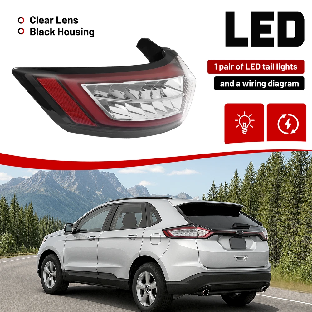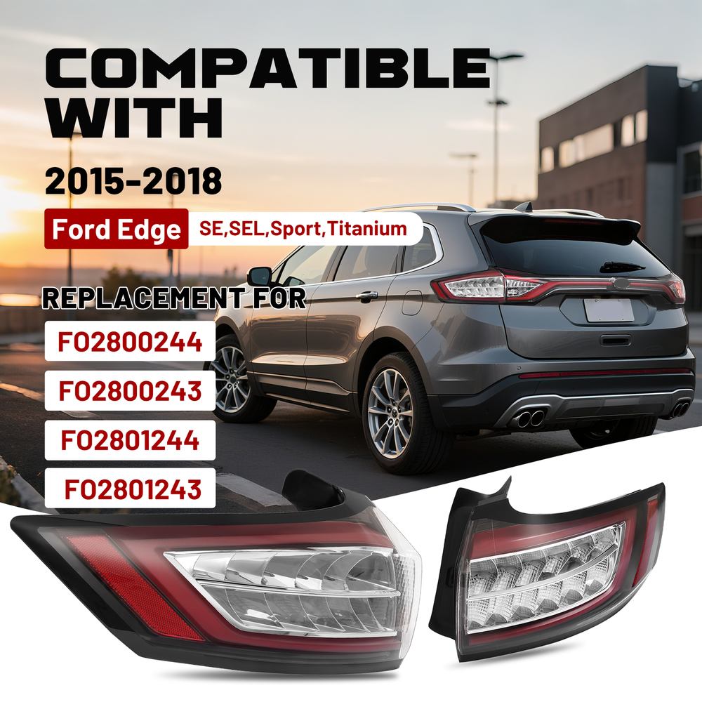 Headlight Assemblies Tail Light Assemblies Fog Light Assemblies Turn Signal Light Assemblies Side Marker Light Assemblies Park & Combination Light Assem Light Bulbs & LEDs Other Type Light Other Product Display Product Description Full LED Tail Lights Left & Right Side For Ford Edge 2015-2018 Brake Lamps Feature Easy to install - no complicated wiring required 100% Brand New & High Quality –fresh LED tail lights, never used or refurbished, ensuring top performance and longevity. At night, in tunnels, in rain, fog or dusty weather, it provides clear vehicle position signals to rear vehicles to avoid tailgating. Product Specifics Type: Tail Light Lighting Technology:LED Lens Color:Clear Lens Housing Color: Black Housing Light Color: Amber, Red Items Included: Structural and Functional Guidelines Placement on Vehicle: Rear, Left, Right Installation Method: Replacement Material: Plastic(Lens: PC) Replaces Part Number: Replace for left: HT4Z13405G, FT4Z-13405-B, FT4Z-13405-G, HT4Z-13405-B, HT4Z-13405-F, FO2800243, FO2800244 Replace for right:HT4B13404AD, FT4Z-13404-A, FT4Z-13404-F, HT4Z-13404-A, HT4Z-13404-E, FO2801243, FO2801244 Fits for For Ford Edge(SE,SEL,Sport,Titanium) 2015-2018 Package Include 1 Pair Of Tail Lights w/ Structural and Functional Guidelines Shipping All items will be shipped out in 1 business day, no expedited service available. (USA only, Does NOT include Hawaii, Alaska or Puerto Rico, PO Boxes/APO's) Shipping Notes We use multiple warehouses and will select the nearest warehouse for delivery according to your order address and our inventory, Thank you for your cooperation. Contact us Any Questions, Just feel free to contact us on eBay. We will reply you in 1 business day. Brand Story Autolighting—Guiding with Light, Protecting with Craftsmanship. In an era where machinery and technology intertwine, reliability and innovation are the cornerstones of progress. Autolighting was born from a pursuit of unparalleled quality—we are not just a manufacturer of car lights, but also a guardian of safety and convenience. We pay attention to every detail of daily driving. With professionalism and craftsmanship, Autolighting provides solid protection for every journey. On Oct 11, 2025 at 01:44:43 PDT, seller added the following information: On Oct 12, 2025 at 18:18:34 PDT, seller added the following information: On Nov 13, 2025 at 00:56:17 PST, seller added the following information: