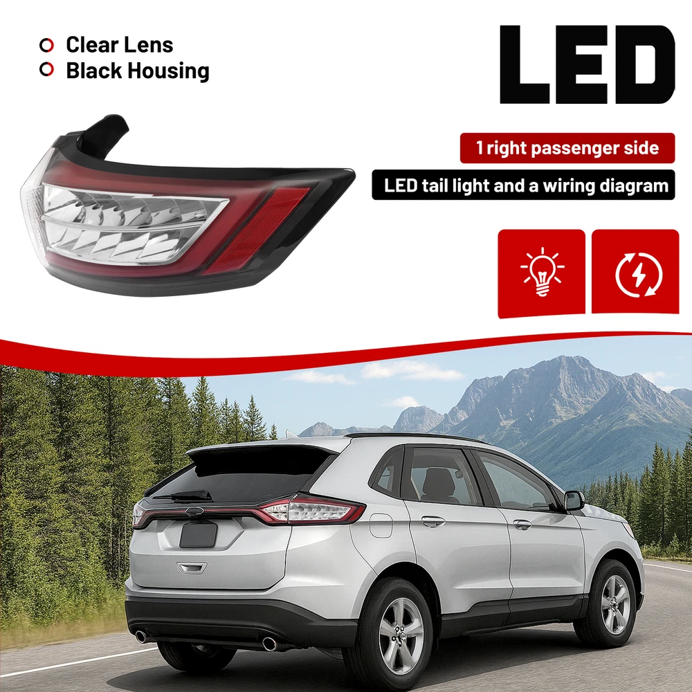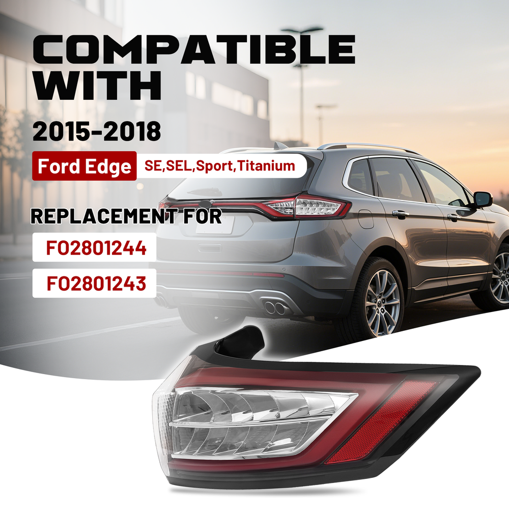 Headlight Assemblies Tail Light Assemblies Fog Light Assemblies Turn Signal Light Assemblies Side Marker Light Assemblies Park & Combination Light Assem Light Bulbs & LEDs Other Type Light Other Product Display Product Description Full LED Tail Light Right Side For Ford Edge 15 2016-2018 Brake Lamp #FO2801244 Feature Easy to install - no complicated wiring required 100% Brand New & High Quality –fresh LED tail lights, never used or refurbished, ensuring top performance and longevity. At night, in tunnels, in rain, fog or dusty weather, it provides clear vehicle position signals to rear vehicles to avoid tailgating. Product Specifics Type: Tail Light Lighting Technology:LED Lens Color:Clear Lens Housing Color: Black Housing Light Color: Amber, Red Items Included: Structural and Functional Guidelines Placement on Vehicle: Rear, Right Installation Method: Replacement Material: Plastic(Lens: PC) Replaces Part Number: Replace for right:HT4B13404AD, FT4Z-13404-A, FT4Z-13404-F, HT4Z-13404-A, HT4Z-13404-E, FO2801243, FO2801244 Fits for For Ford Edge(SE,SEL,Sport,Titanium) 2015-2018 With level 2 trim Package Include 1XTail Light (Right Side) w/ Structural and Functional Guidelines Shipping All items will be shipped out in 1 business day, no expedited service available. (USA only, Does NOT include Hawaii, Alaska or Puerto Rico, PO Boxes/APO's) Shipping Notes We use multiple warehouses and will select the nearest warehouse for delivery according to your order address and our inventory, Thank you for your cooperation. Contact us Any Questions, Just feel free to contact us on eBay. We will reply you in 1 business day. Brand Story Autolighting—Guiding with Light, Protecting with Craftsmanship. In an era where machinery and technology intertwine, reliability and innovation are the cornerstones of progress. Autolighting was born from a pursuit of unparalleled quality—we are not just a manufacturer of car lights, but also a guardian of safety and convenience. We pay attention to every detail of daily driving. With professionalism and craftsmanship, Autolighting provides solid protection for every journey. On Oct 11, 2025 at 02:08:53 PDT, seller added the following information: On Oct 12, 2025 at 18:17:57 PDT, seller added the following information: On Feb 27, 2026 at 17:54:36 PST, seller added the following information:
