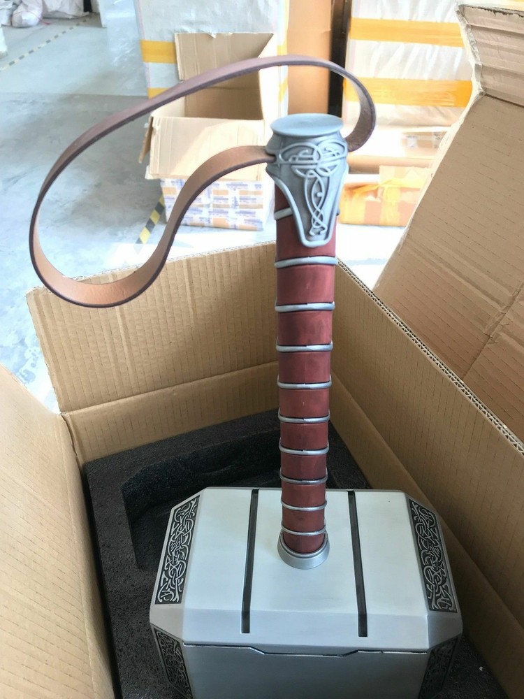 1:1 Scale Full Metal Thor Hammer Mjolnir 1/1 Replica Thor Custom Cosplay Hammer Collection Model Toy Note: The color of handle maybe light or dark brown due to different batch, which is shipped by random. Product Description: The item is made in china! NO WOODEN BOX, Only paper box Material: High Quality 100% Zinc-Alloy and Leather Belt Size: 43cmX22cmX30cm (17.3"X8.6"X11.8") Hammer Weight: about 3.5KG Thicken:1mm Total Weight about 5-6Kg Package:in Box Technology:CNC engraving Package Included: 1 pc Full Metal Thor Hammer